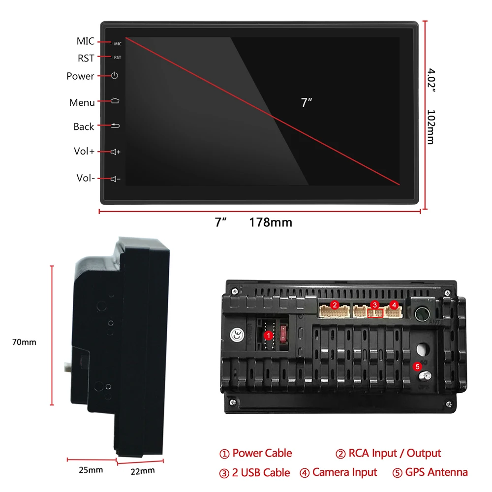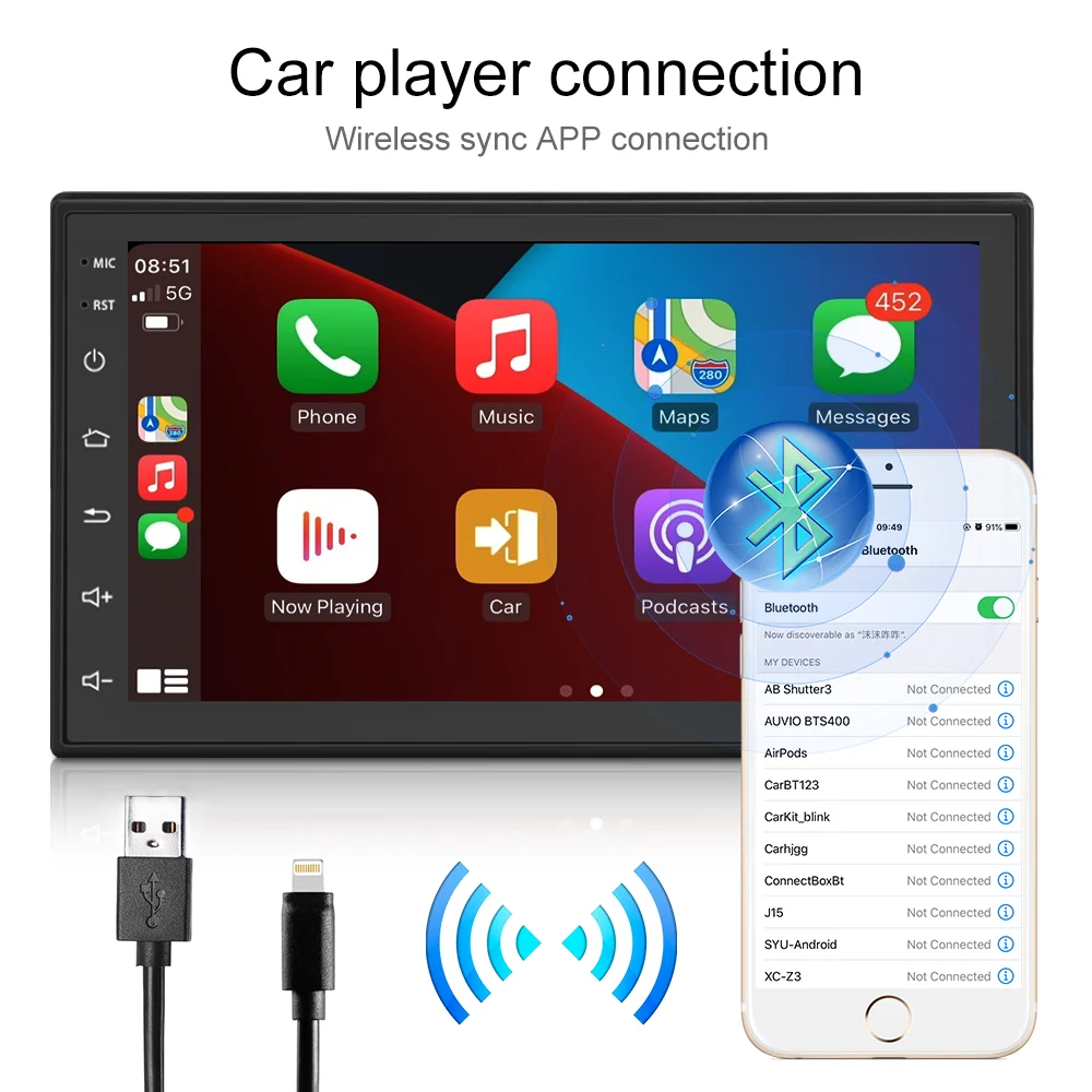 Podofo Android 2Din Car Radio Multimedia Stereo Video Player Carplay WIFI GPS Steer Wheel Control FM 1GB+16GB/4GB+64GB/8GB+128GB