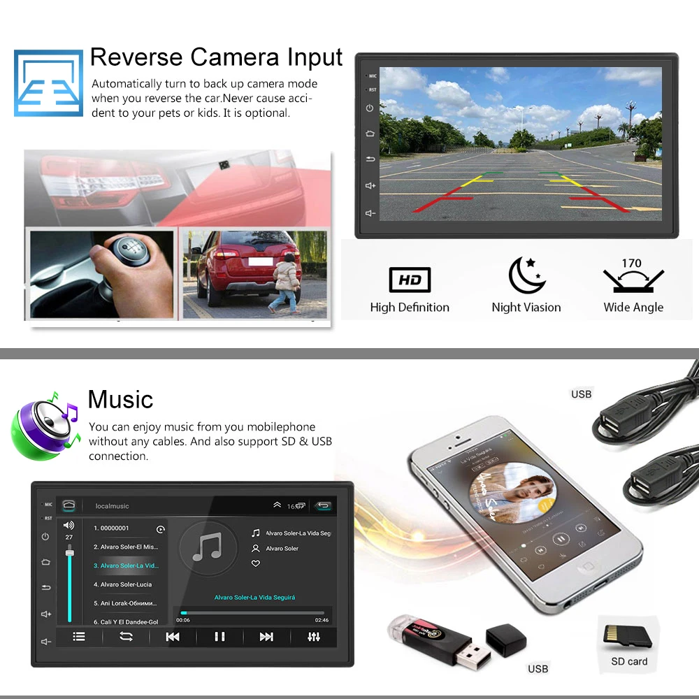 Note:The video port of rear camera must insert the "CAMIN" port of car radio.