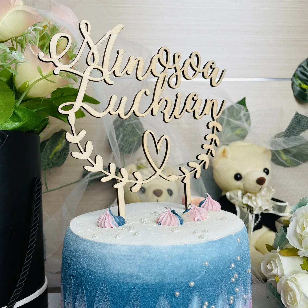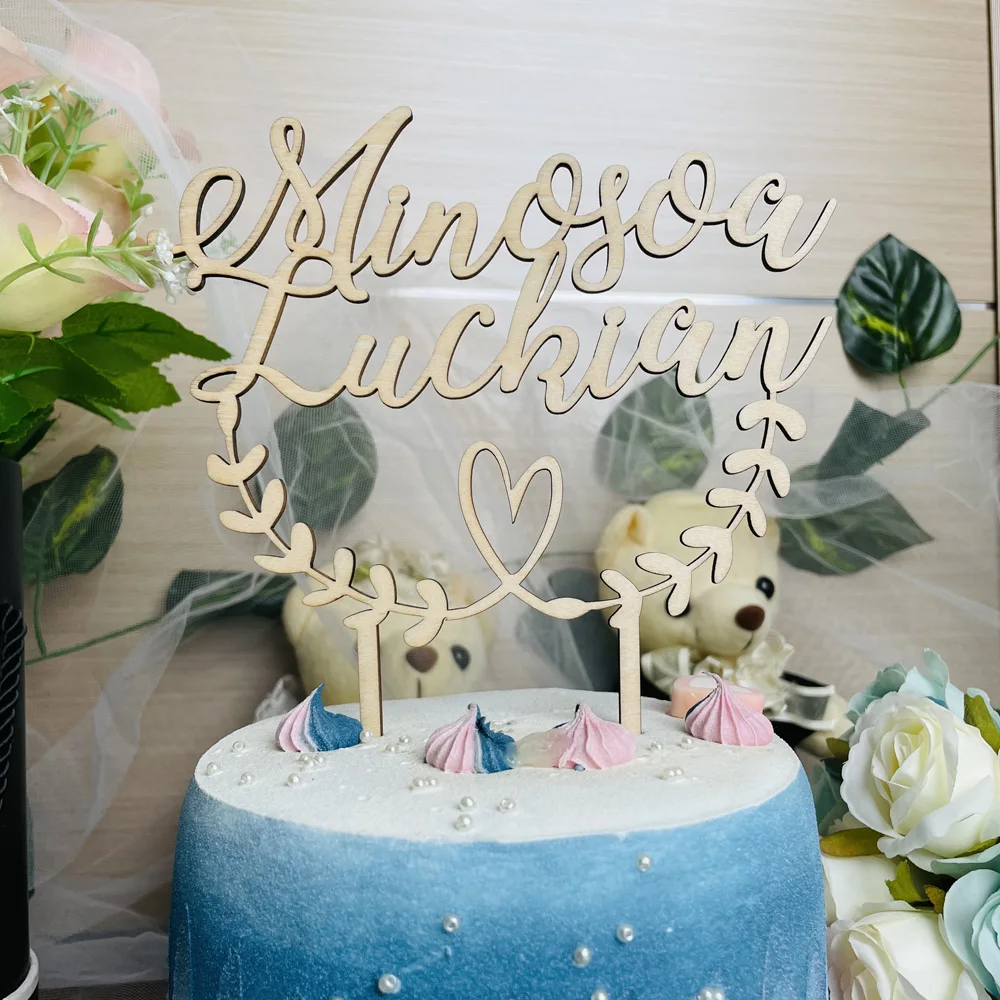 Персонализированные парные имени Деревянный Торт Топпер на заказ акриловое зеркало розовое золото черные украшения для свадебного торта юбилейные Вечерние