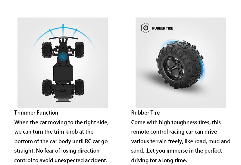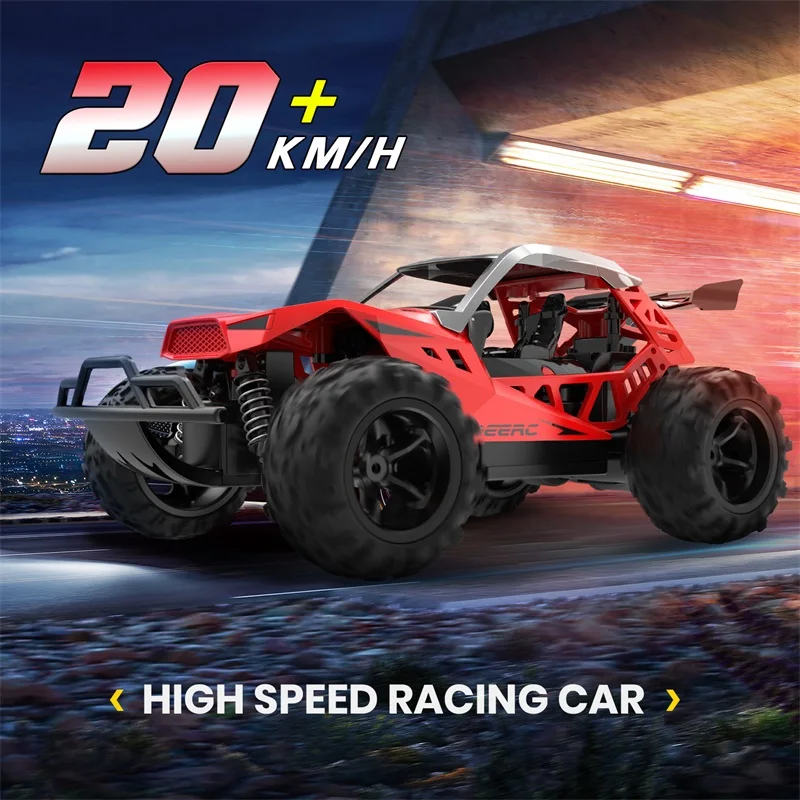 [Усовершенствованный прочный дизайн] этот автомобиль-гонщик оснащен резиновой шиной, противоударной головкой, амортизатором, который обеспечивает поддержку бега на различных участках. Такие как, грязь, трава, песок, шоссе... 1/22 полноразмерные с сильным корпусом автомобиля, краш-пуф и два сиденья делают его реальной гоночной моделью внедорожника.