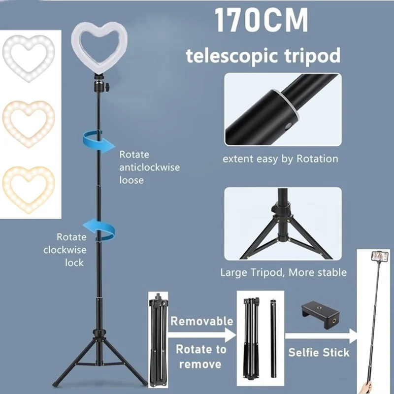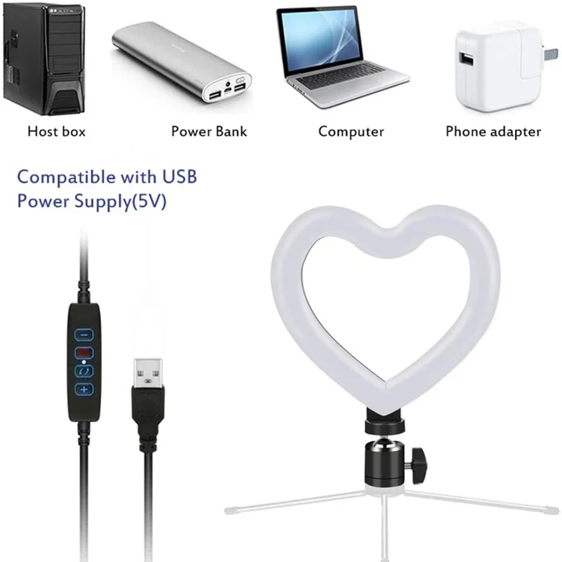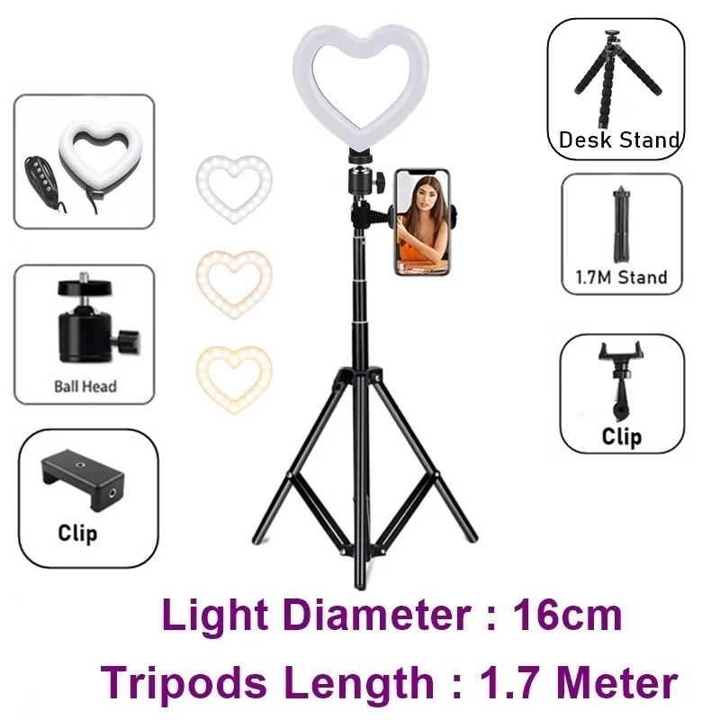 16 см в форме сердца с регулируемой яркостью кольцо с фотографией светильник Led кольцо для селфи лампа для телефона светильник для фотосъемки со штативом подставка для Youtube видео Live Makeup