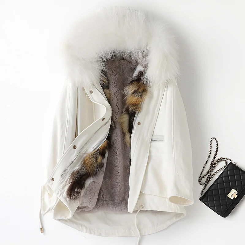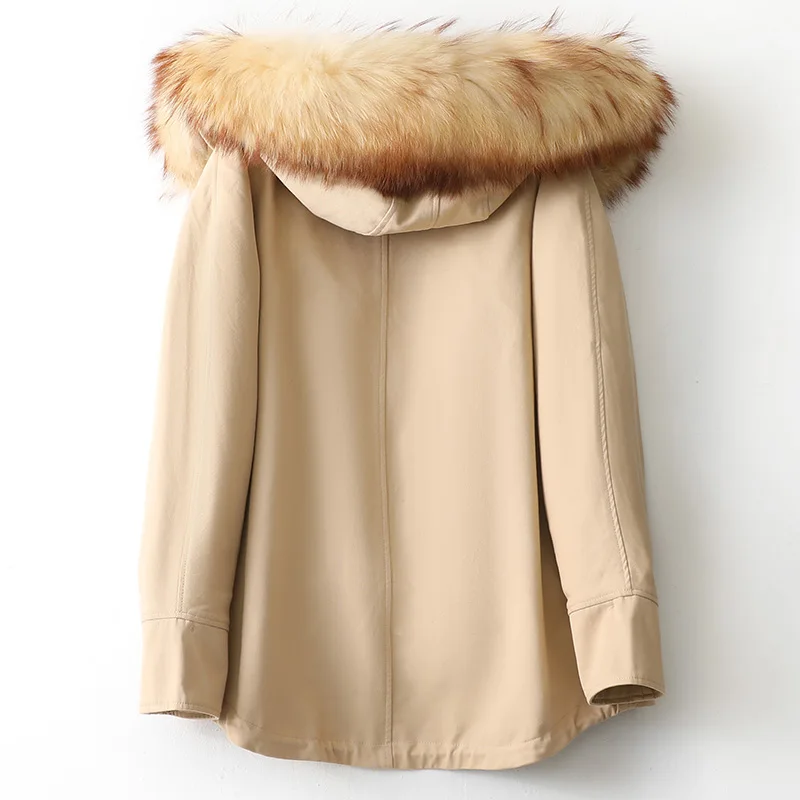Настоящая толстовка с мехом енота с подкладкой из кроличьего меха