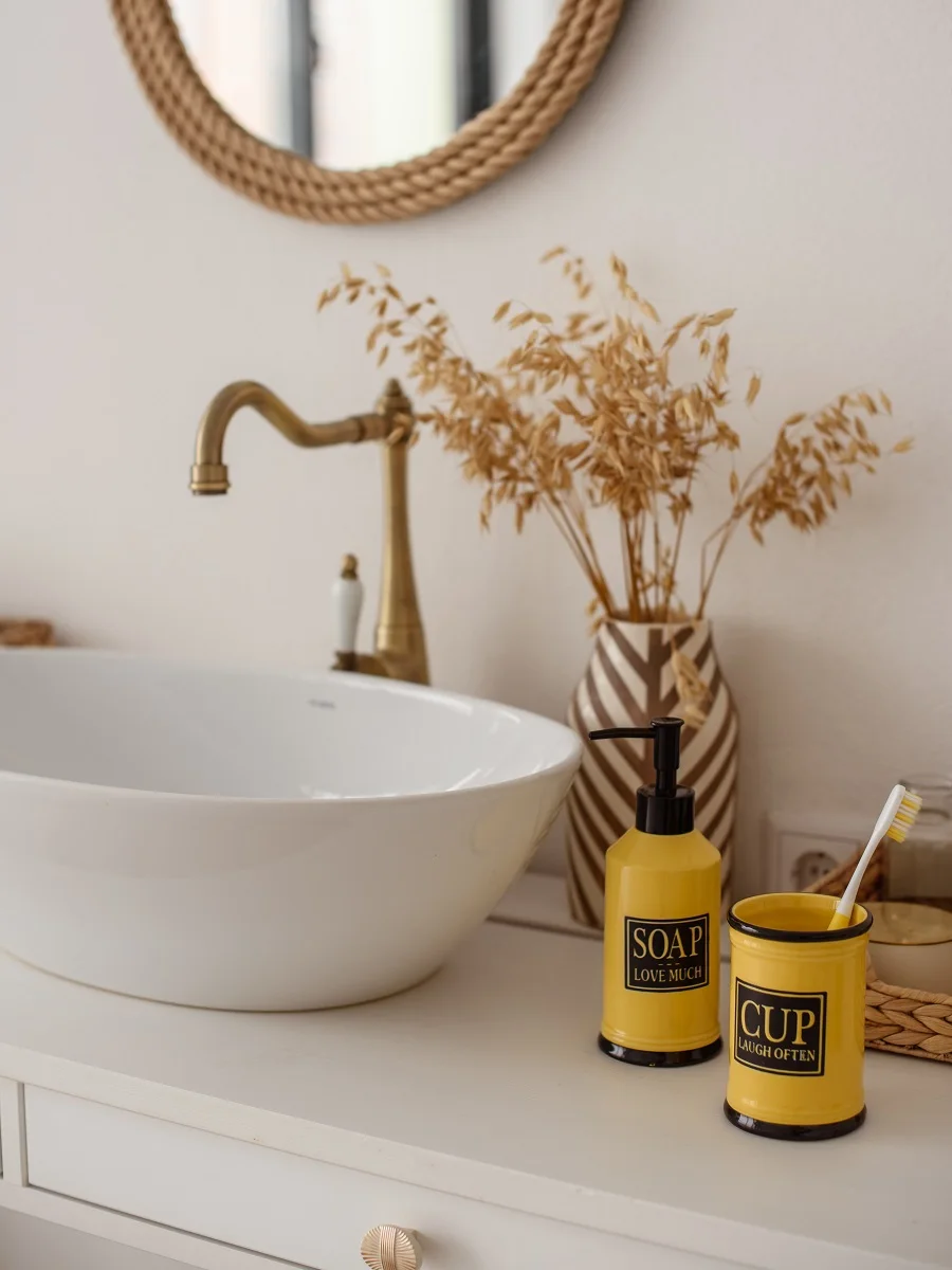 Accessories Collection "yellow" will become indispensable elements of your bathroom. Color solution and texture will make you fall in love with the first touch and visual dating. High-strength ceramics will keep the original appearance even with the longest operation. The toilet bowl consists of a plastic handle and a replaceable nozzle with high abrasion resistance. Convenient dispenser for serving soap, shampoos and other detergents can be used for both the bathroom and the kitchen dispenser. Soap dishes for the bathroom-a must-have attribute of any bathroom, designed for convenient storage and daily use of soap. A toothbrush glass is not just an original addition to the bathroom, but also provides an opportunity to maintain proper hygiene and prevent the reproduction of bacteria.