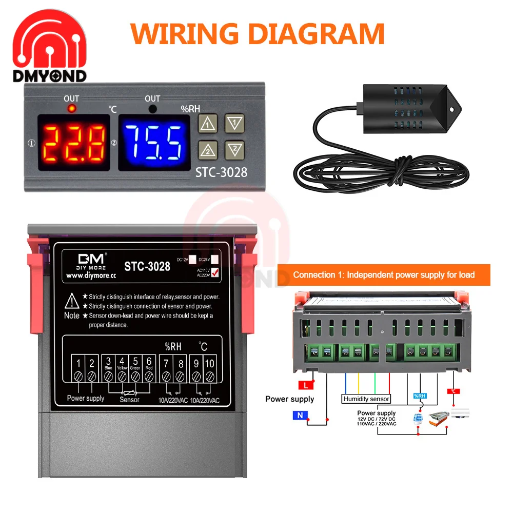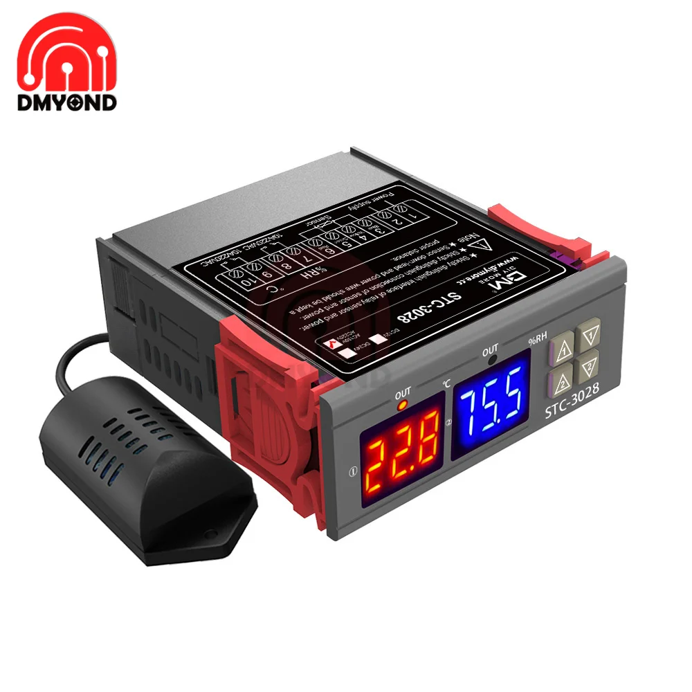 Двойной цифровой регулятор температуры STC-3008, гигрометр, термостат с двумя релейными выходами, переменный ток 110 В, 220 В, постоянный ток 12 В, 24 В, 10 А, STC 3008