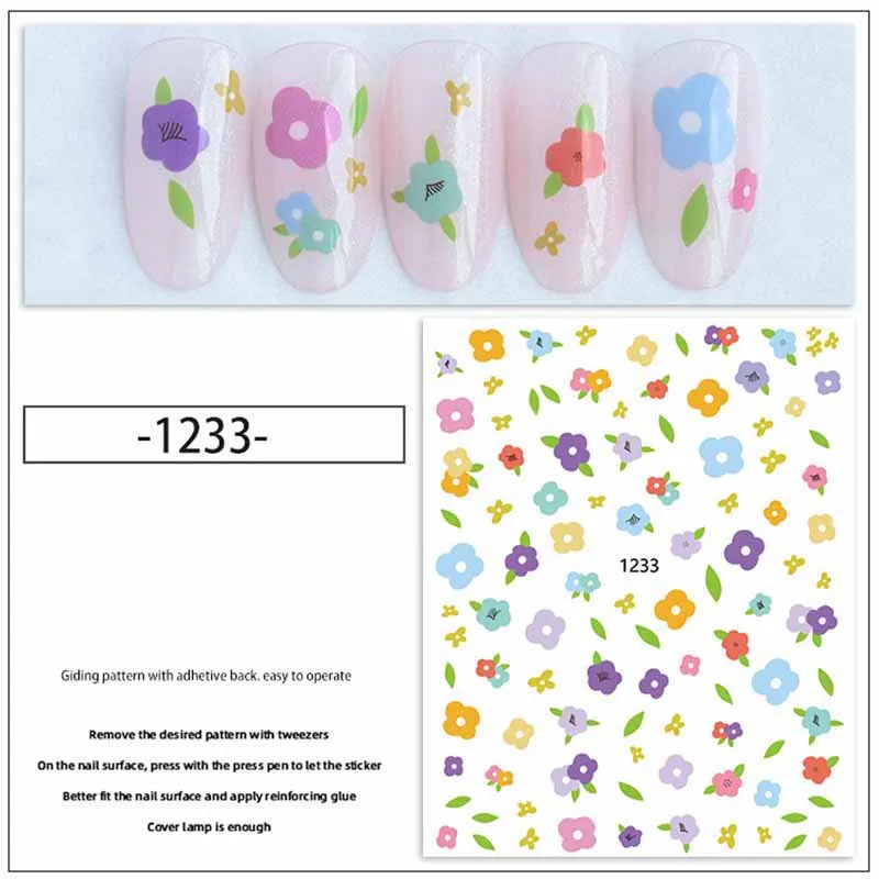 Летние цветы фруктовые наклейки для ногтей 3D клубника персик Маргаритка цветок для девочек тату ультра тонкий клей для ногтей YJ048