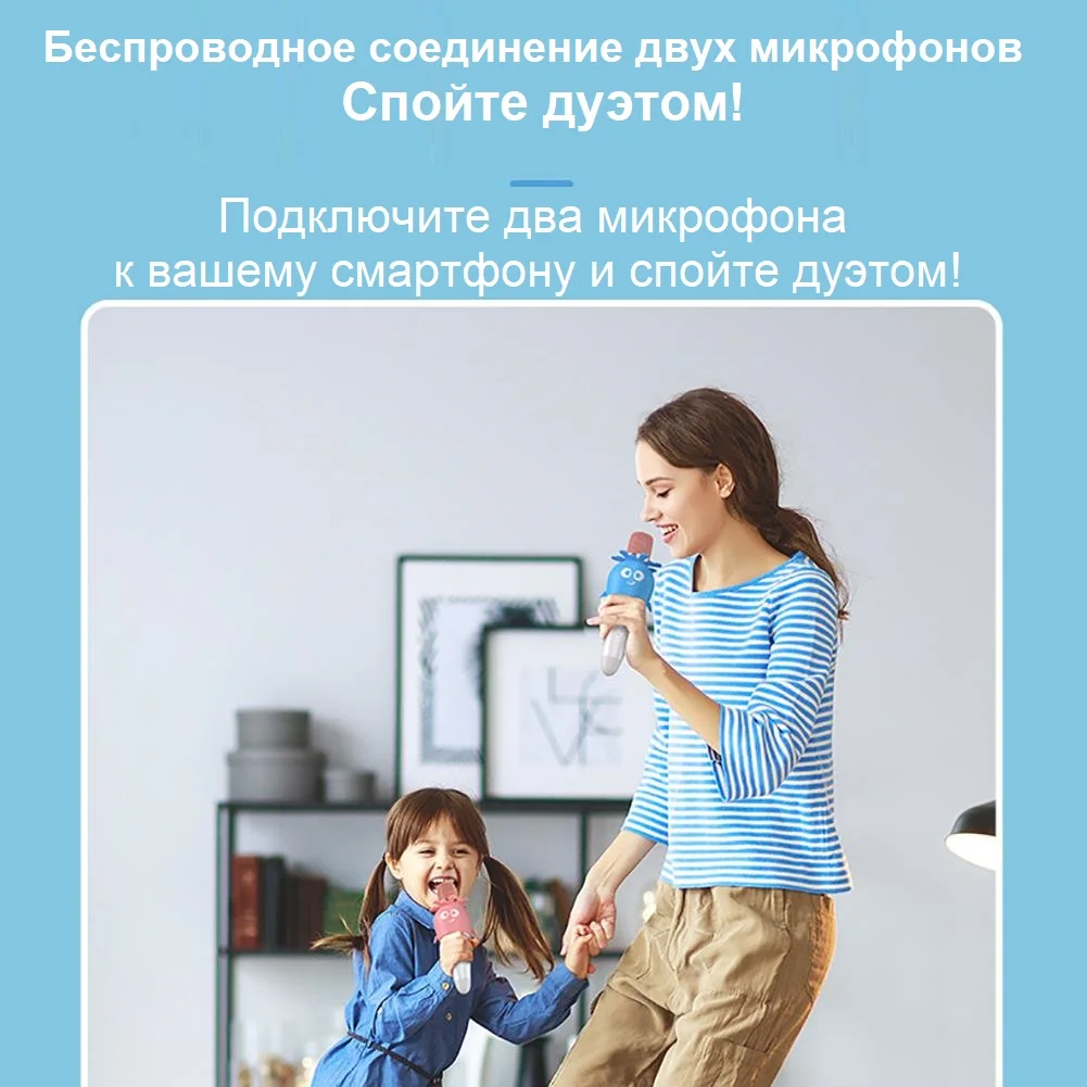 Портативный микрофон-караоке Kids Karaoke K5 совместим с большинством мобильных телефонов и планшетов, а так же является вполне самодостаточным устройством. Подходит для поездок, пикников, вечеринок, семейных развлечений, пения в караоке и т.д. Отличный подарок для поющих детей, любителей караоке любого возраста, а также для тех, кто хочет попробовать себя в роли исполнителя современной песни. Прекрасный вариант для юных начинающих артистов, которым предстоит сделать первые шаги на сцене. Оригинальный беспроводной караоке-микрофон K5 гарантирует вам отличное настроение и веселое времяпровождение в любой компании. Выбор более высокого или более низкого тона вашего голоса сделает пение более забавным - вы можете петь песни и разговаривать голосом как после вдыхание гелия из шариков.