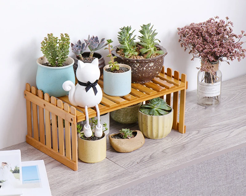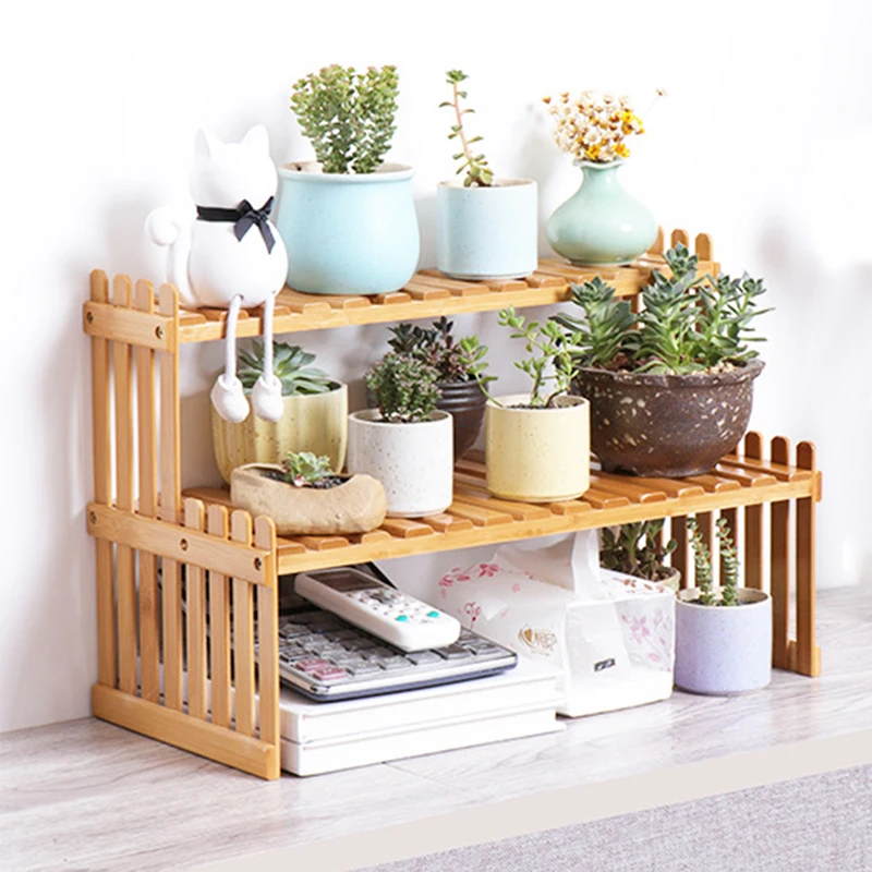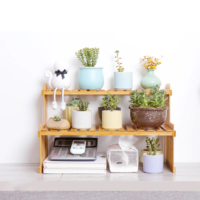 Офисная настольная стойка для хранения Бамбуковая Цветочная витрина растительные полки
