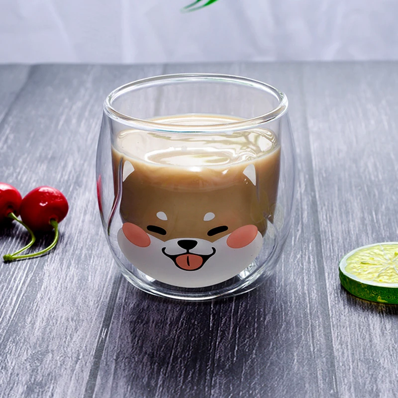 200 мл корейские милые кружки Шиба ину с двойным стеклом для завтрака, кружка для молока, кавайная мультяшная кофейная чашка для чая, дамские чашки для сока
