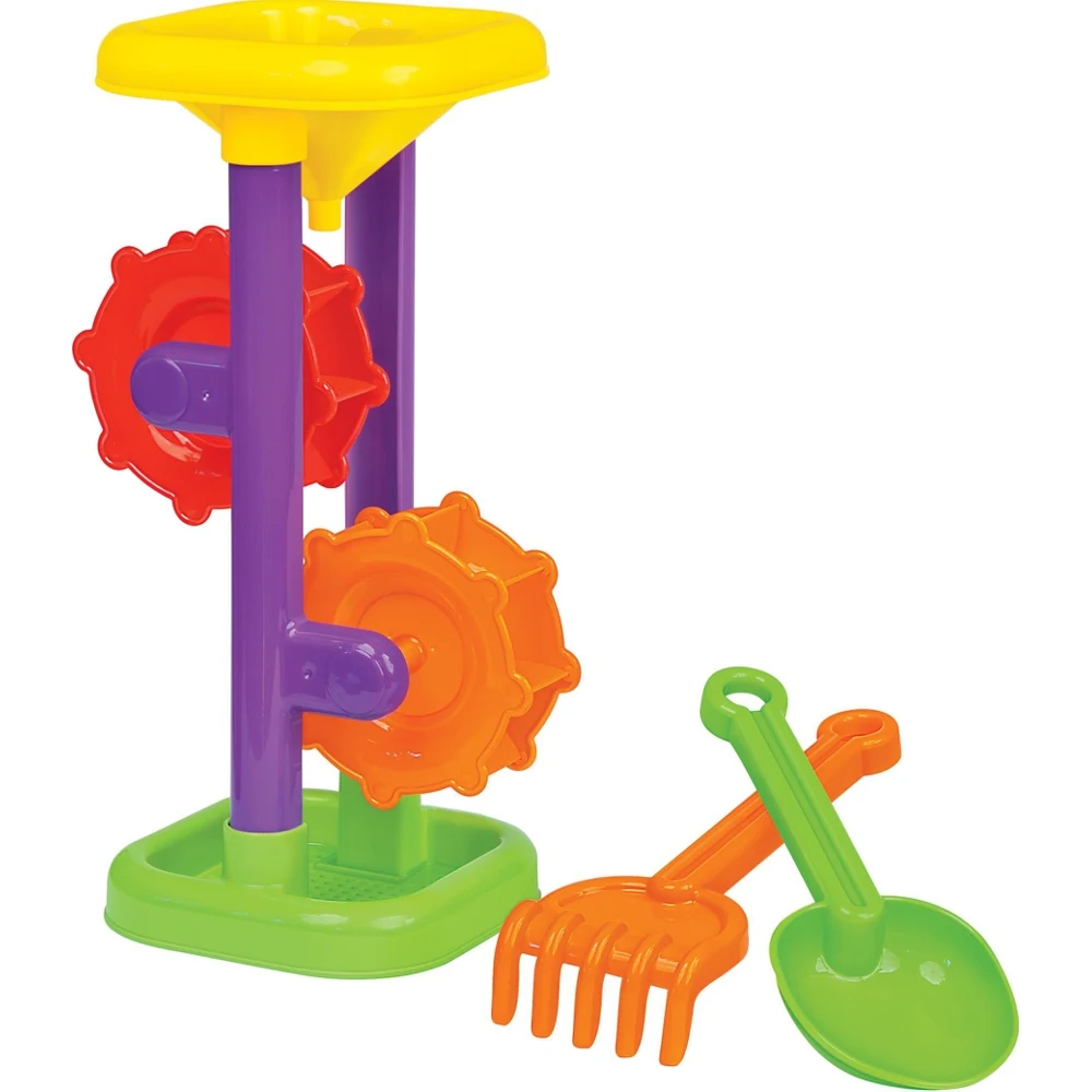Набор предназначен для игры в песочнице. Развивает воображение, мелкую моторику, координацию, логическое мышление. В набор входит: песочная мельница, совок №7, грабельки №7.