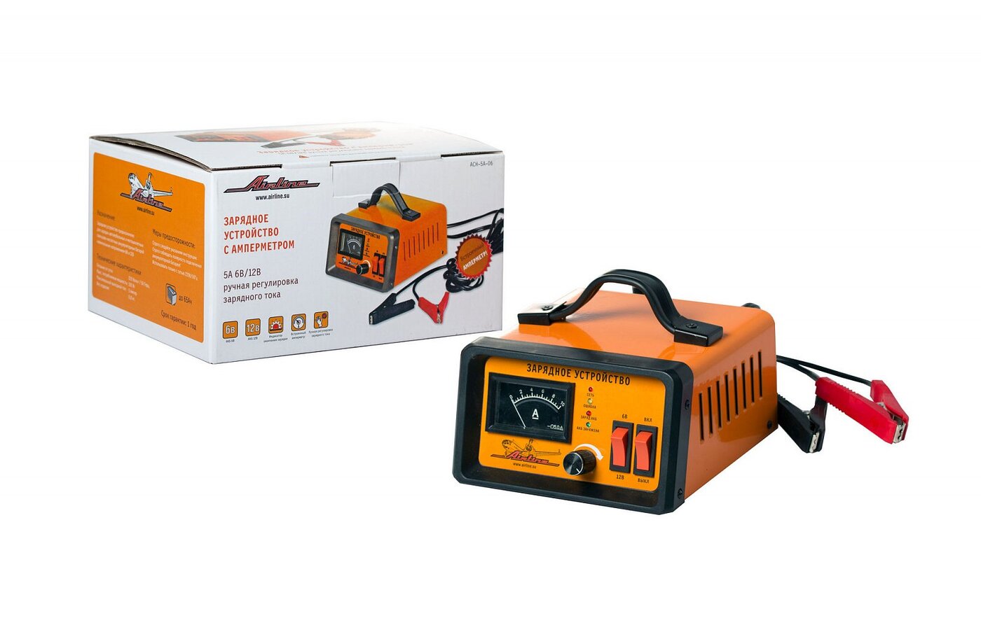 Зарядное устройство для автомобилей AIRLINE 6В/12В 5А, амперметр, руч. Регул (ACH-5A-06)Brand