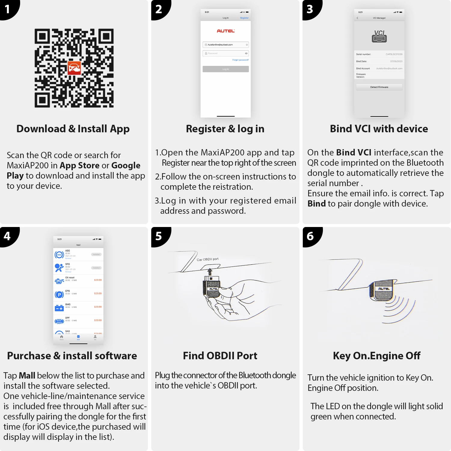 5. Подключите разъем Bluetooth-ключа MaxiAP200C к порту OBDII автомобиля.