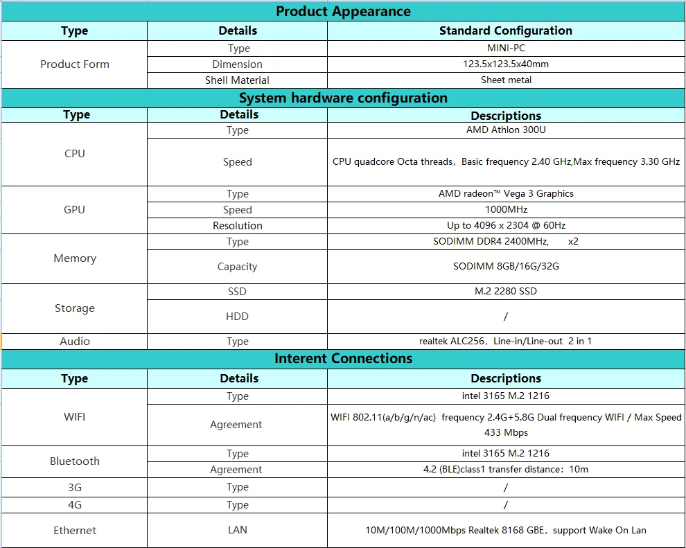 AM02 AMD Athlon 300U WIN10 MINI PC8G/16G RAM + 128G/256G/512G/1T ROM