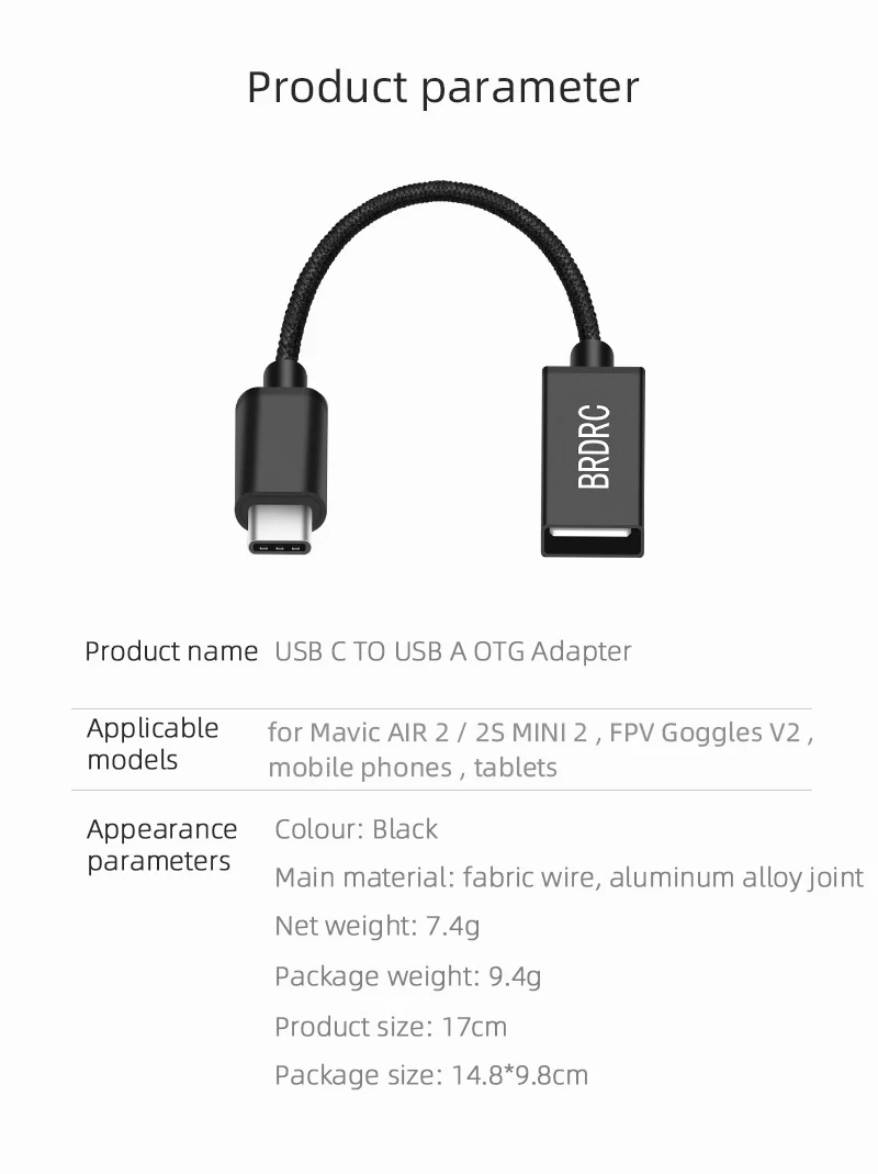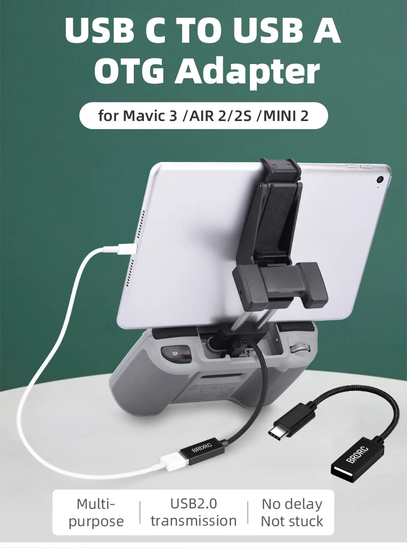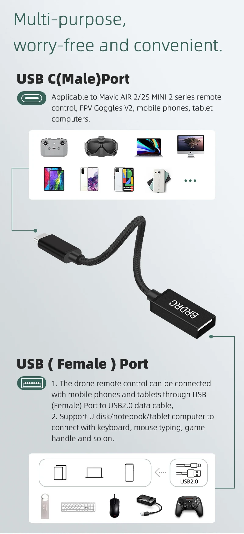 1. Через кабель OTG к кабелю USB 2,0, легко подключить Mavic AIR 2/2 S MINI 2 series пульт дистанционного управления и планшетный компьютер, без необходимости приобрести дополнительный кабель для передачи данных,