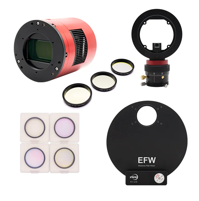 ZWO упаковал популярную аси6200mm Pro астрономическую камеру с электронным фильтрующим колесом и M68- OAG и набором фильтров.