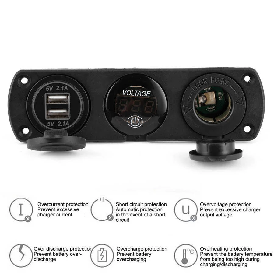 1. 12 В, 3 отверстия, гнездо для сигарет, с 12 В USB выходом + светодиодный вольтметр с цифровым дисплеем + 12 В разъем для прикуривателя.Спецификация: