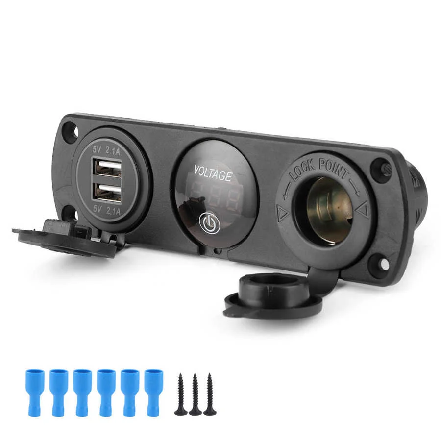 3 переключатель отверстия панель двойной USB светодиодный цифровой вольтметр прикуриватель зарядное устройство для автомобиля