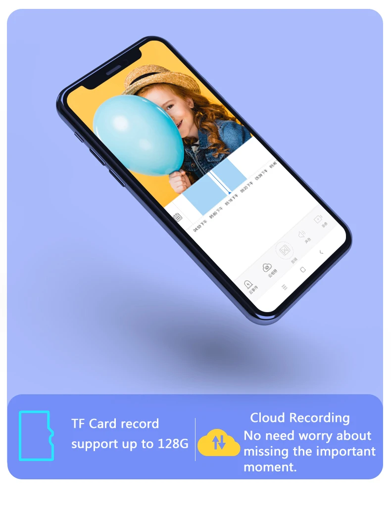 До 128g tf карта, облачная запись не нужно беспокоиться о пропуске важного момента.