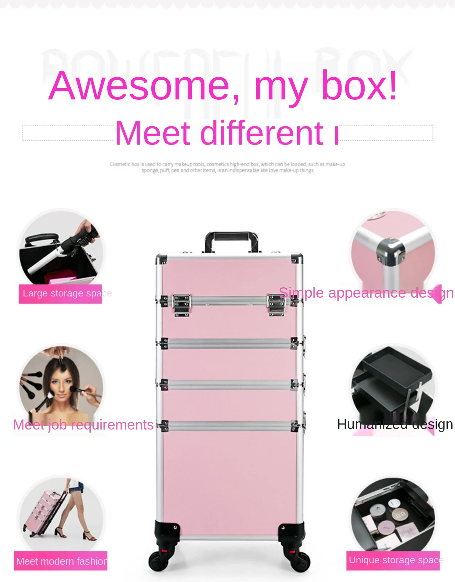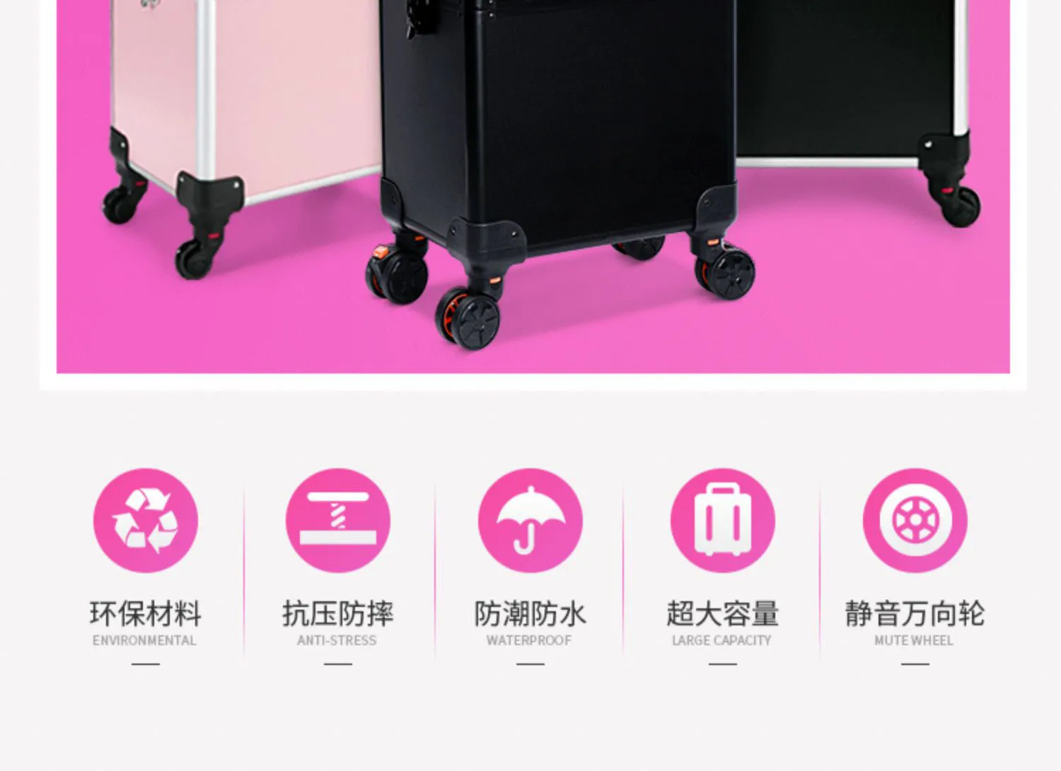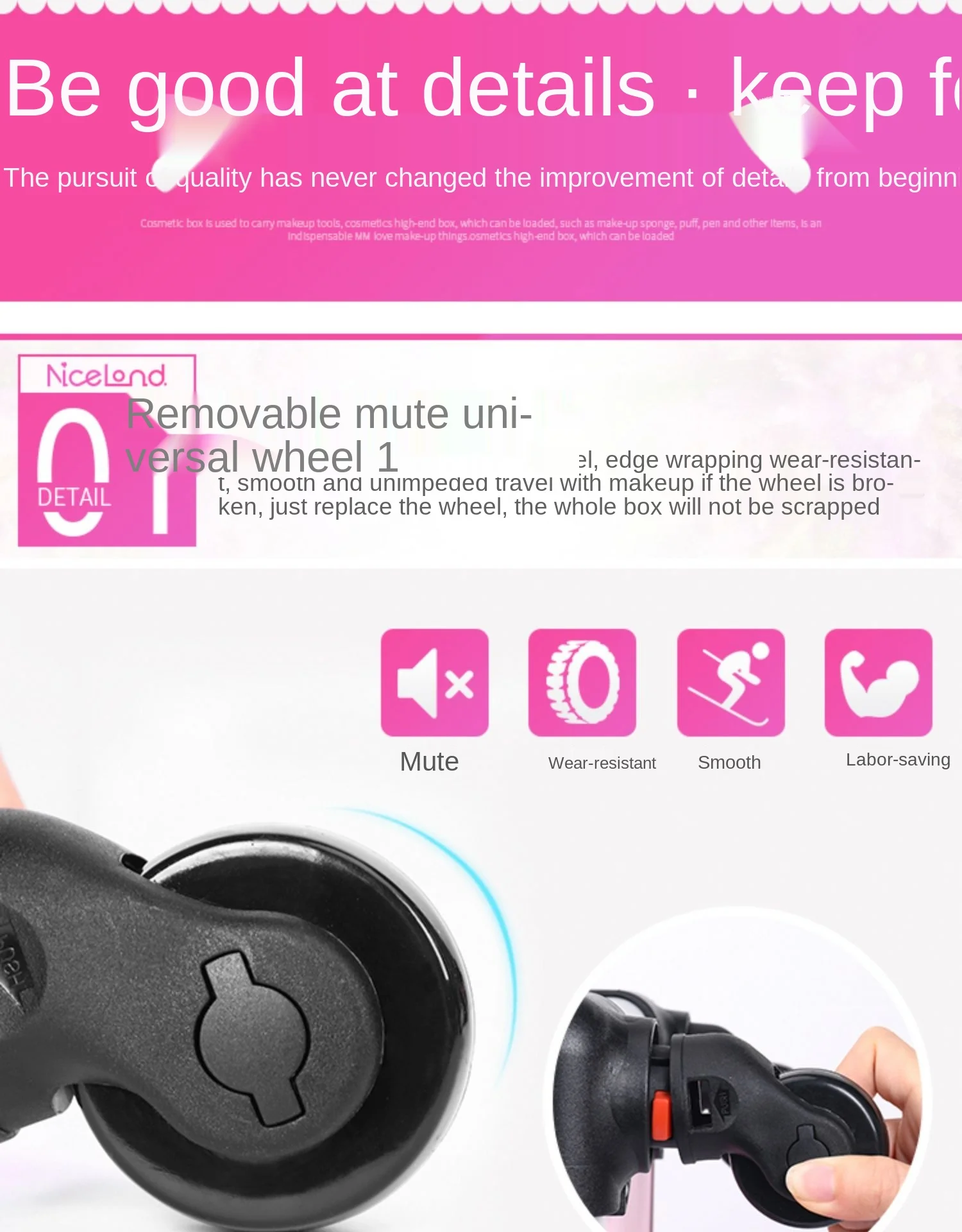 Новое обновление бесшумного универсального колеса, края износостойкие, легко путешествовать с макияжем, если колесо сломано, просто замените колесо, вся коробка не будет сломана