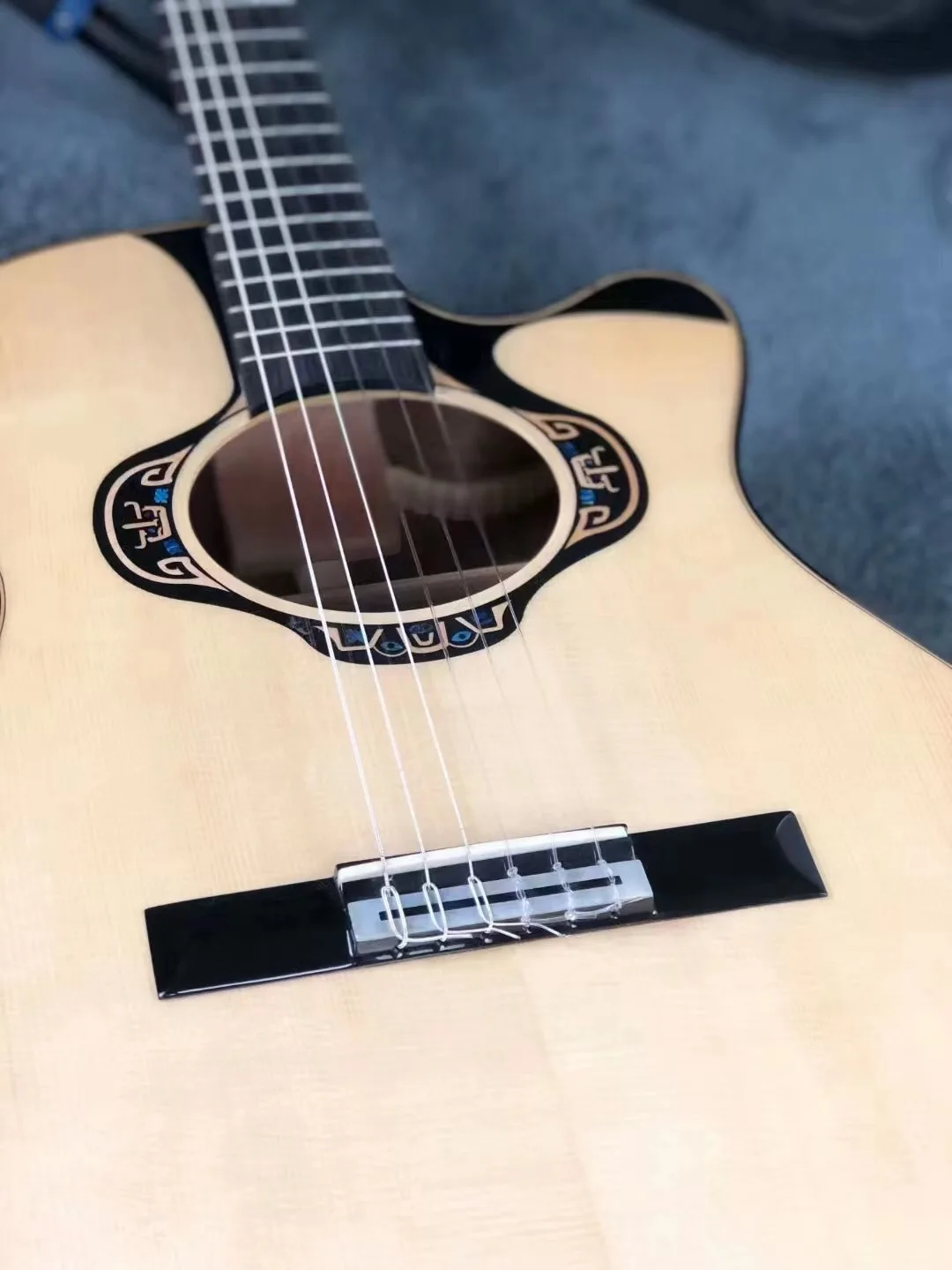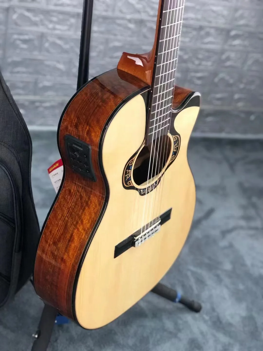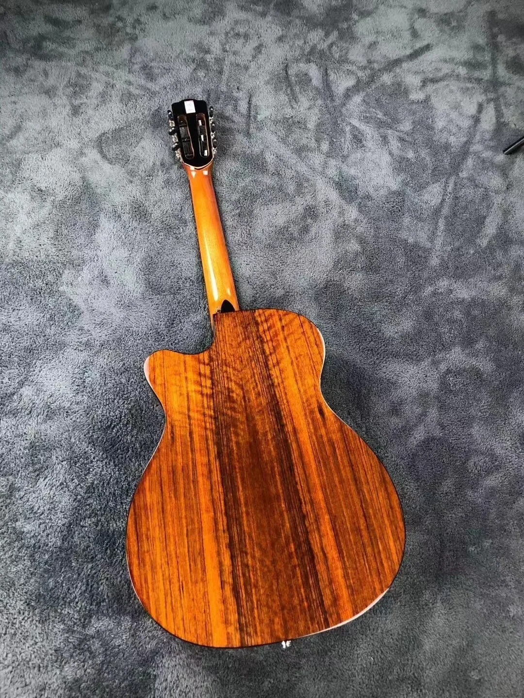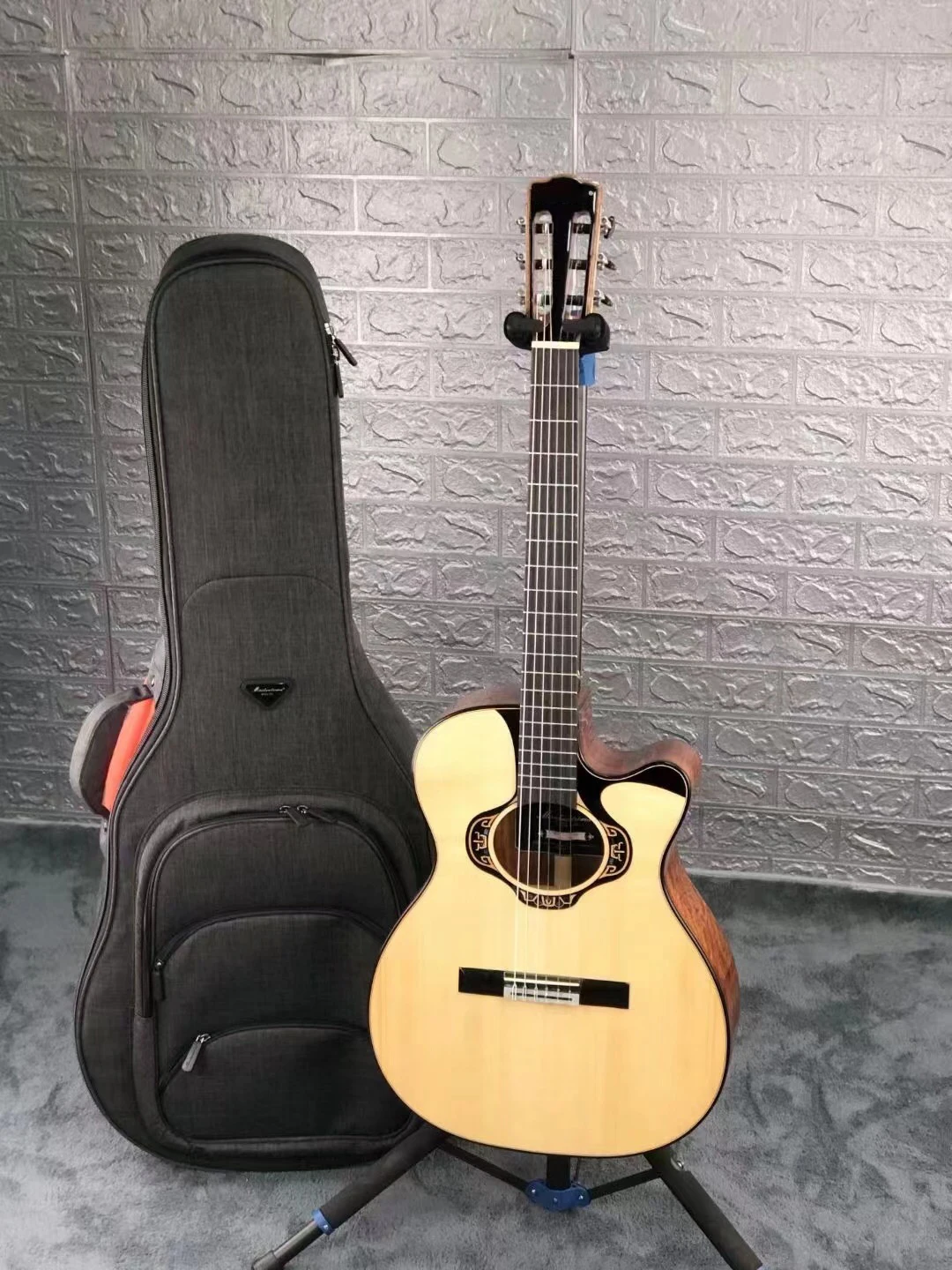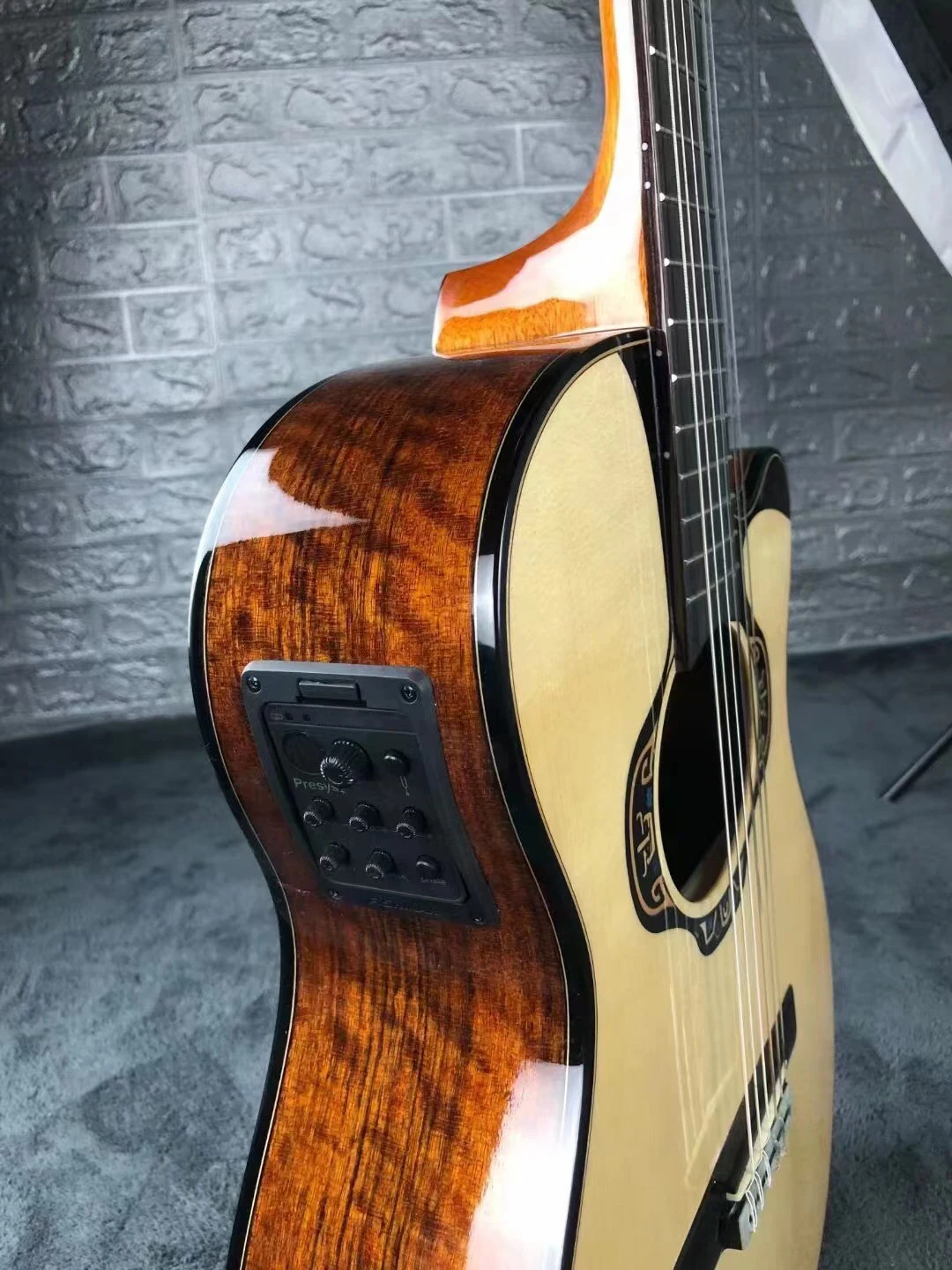 40-дюймовая Электрическая Акустическая классическая гитара OM Cutway Body AA, твердая английская ель, верхнее пламя, ованкол, задняя и боковая сторона с мягким чехлом