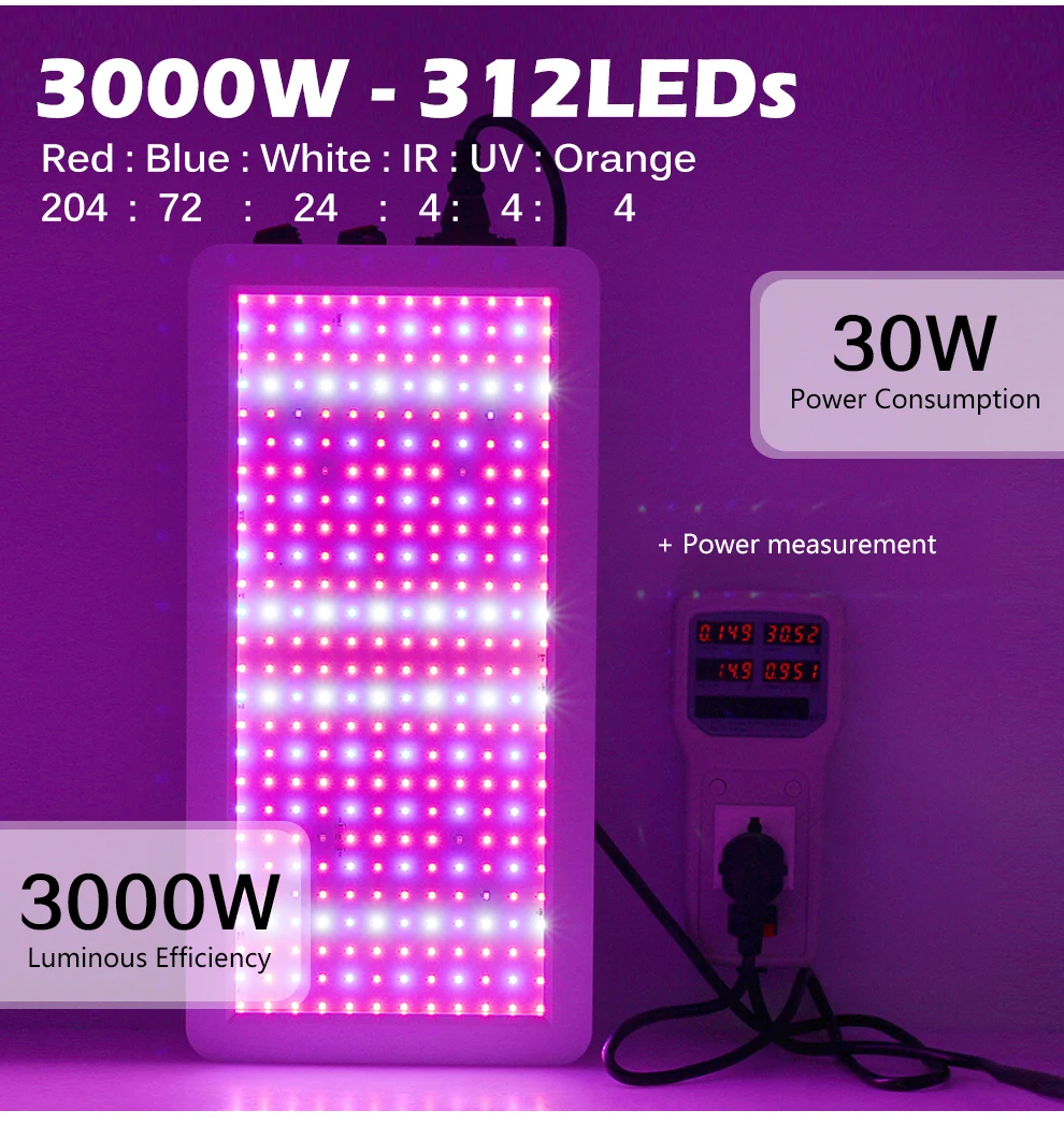 Number of LED Chips: 2000W - 216 LEDs / 3000W - 312 LEDs