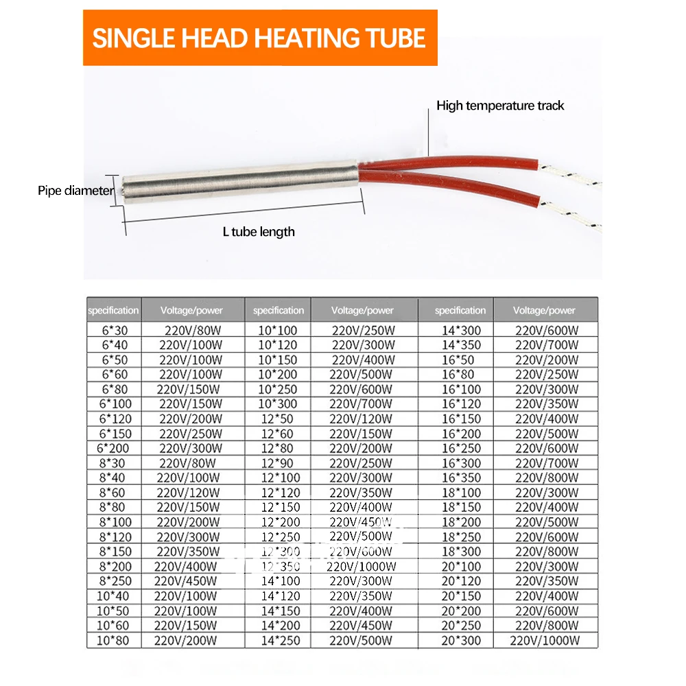 Электрический нагревательный элемент для картриджа 220 В 6 мм диаметр трубки трубчатый нагревательный элемент из нержавеющей стали мощность 100 Вт