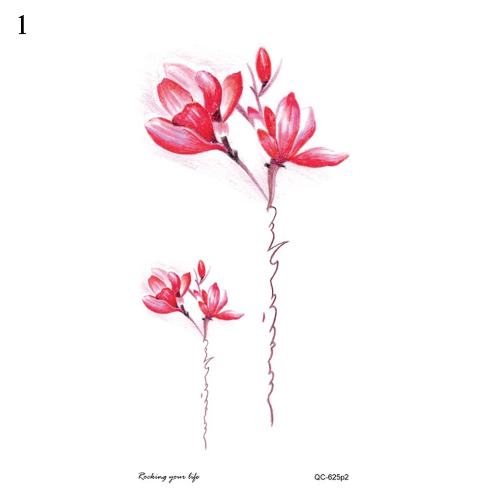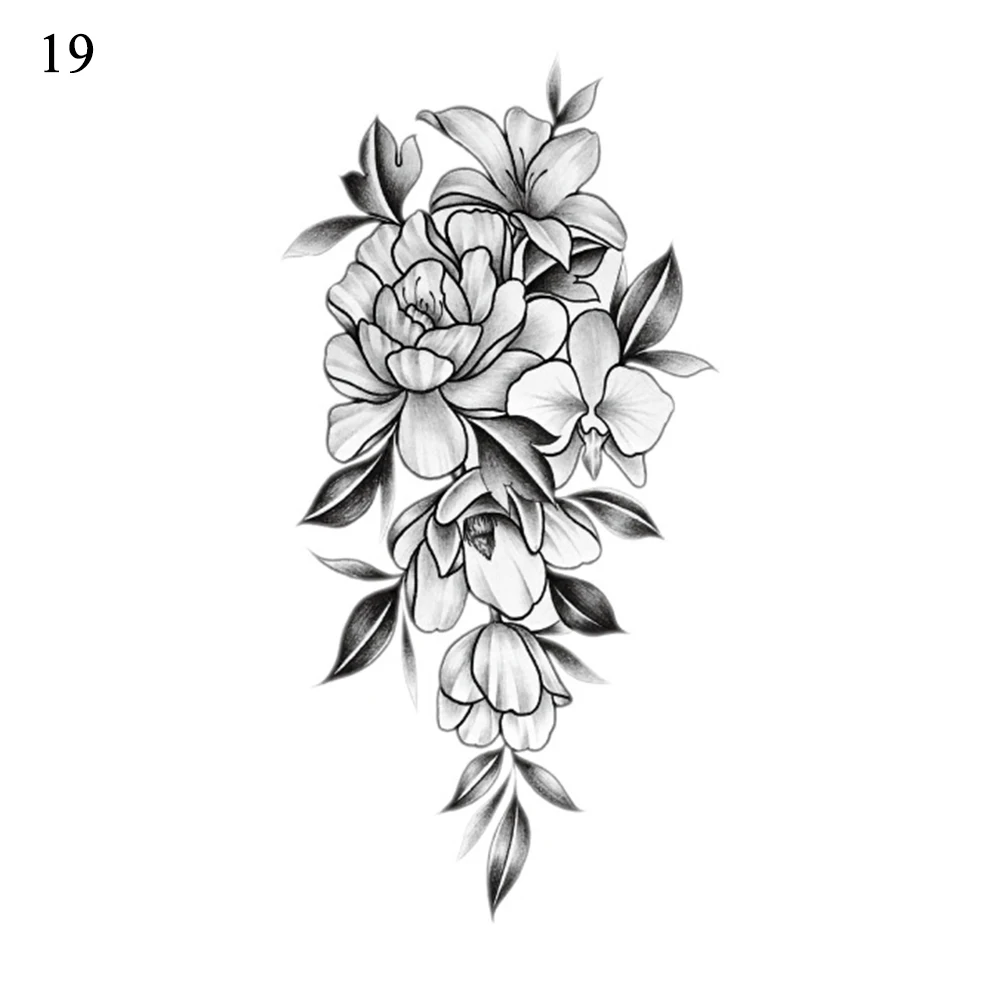 Модная женская водостойкая Временная черная тату-наклейка с цветами для боди-арта