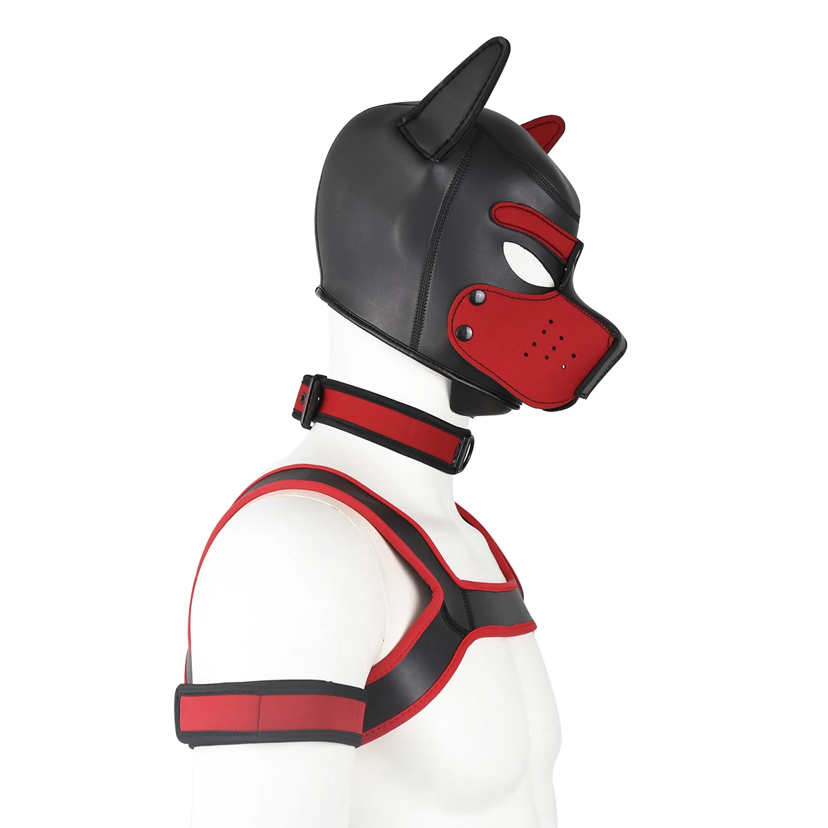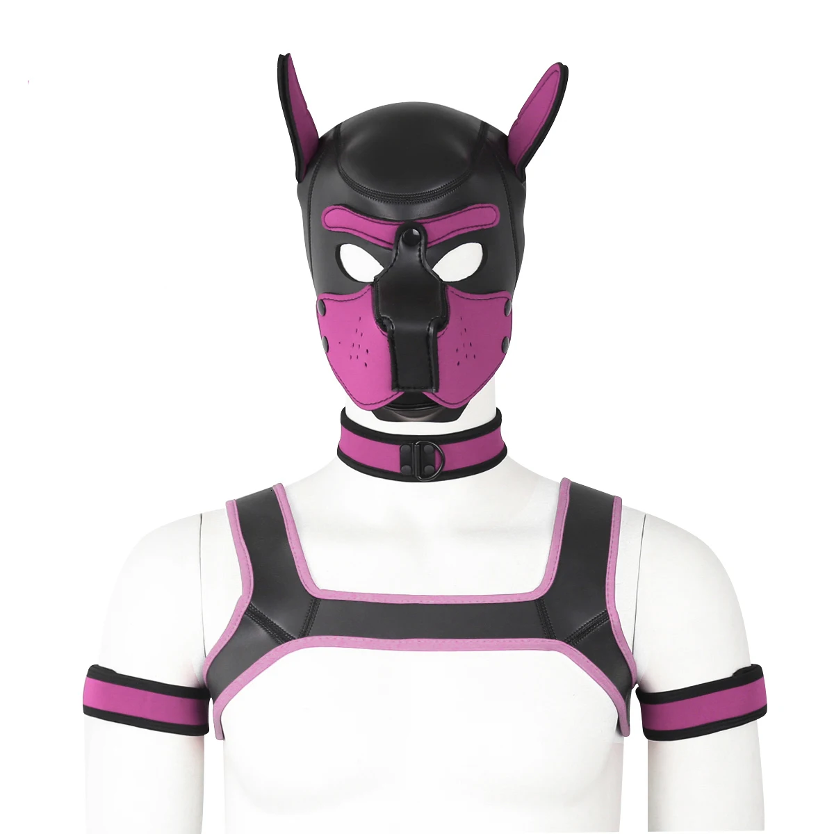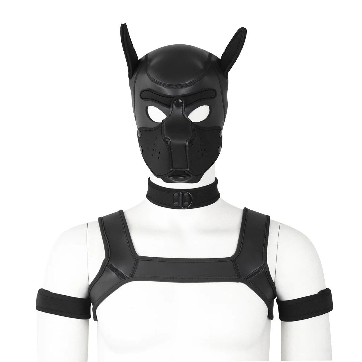 Маска с капюшоном для щенков и игр, БДСМ, бондаж, мужской нагрудный ремень, шейный воротник, повязка на руку, сексуальный костюм, раб, набор для ролевых игр Вечерние Маски, секс-игрушки