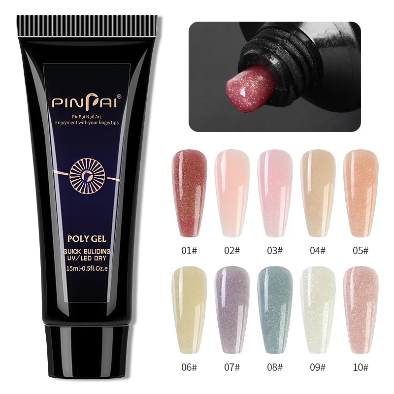 4. Нанесите полигель на формы ногтей ручкой для дизайна ногтей с раствором для скольжения, чтобы сделать гель гладким.