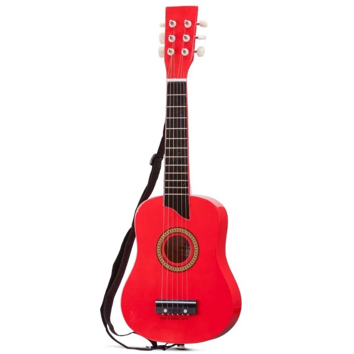 Деревянная игрушечная гитара - это забавный, образовательный и идеальный музыкальный инструмент для развития детской координации рук, глаз и музыкального творчества. В комплект входит: запасная струна, плектр и плечевой ремень. Длина: 64 см.