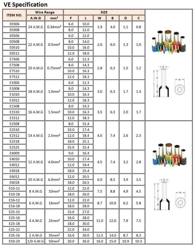 ① Название продукта:Изолированные концевые клеммы шнура (тип VE)