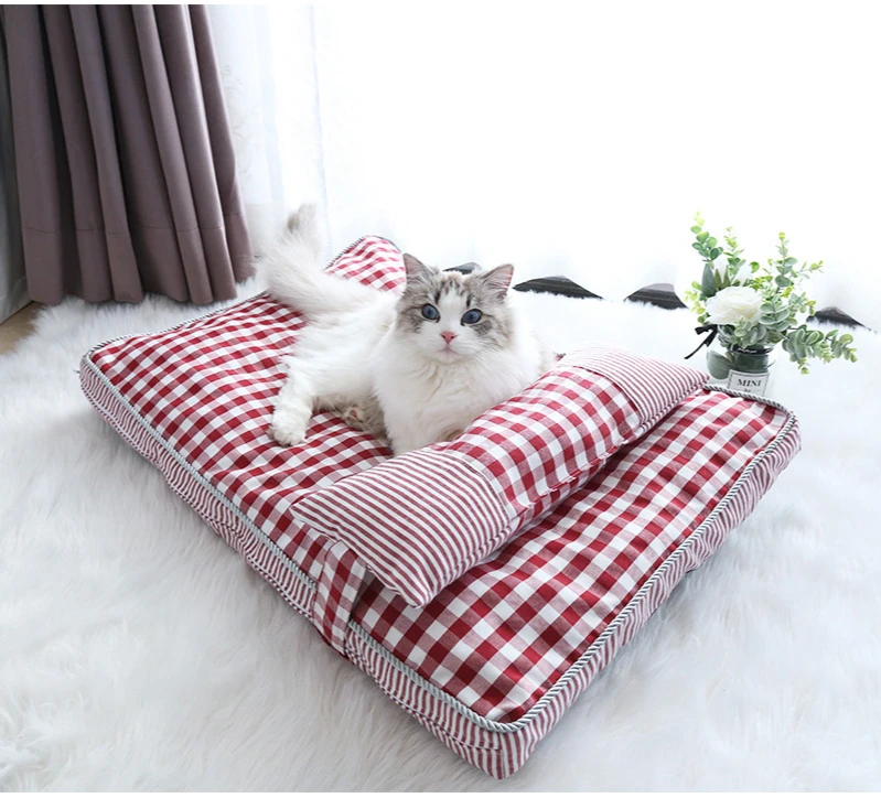 Кошка диван кровать плед рами хлопок ткань мягкий эластичный Кот гнездо с подушкой съемный моющийся для маленьких средних собак спальный коврик