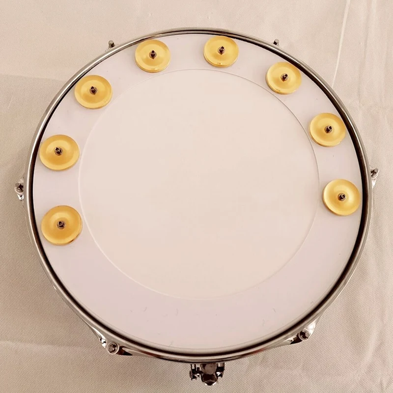 Добавьте бубен-звук в свой барабан SNARE: бубен усиливает удары спины и падает в некоторые «ching» барабана и баса, джунглей канавки, или второй линии стили Марша. Надевайте и снимайте в любое время. Изготовлен из твердого кольца и джинглов, бубен не требует клея во время установки плотно внутри любого барабанного кольца.