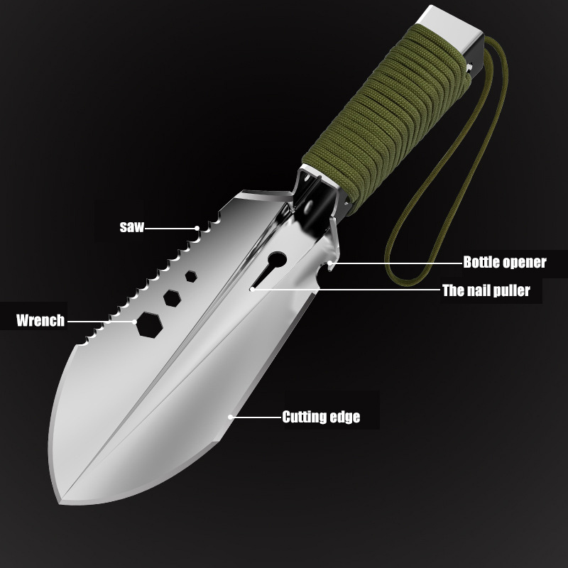 3. Многофункциональность: садовая лопата имеет функции пилы, пилы, шестигранного ключа, открывалки для бутылок и так далее. Многоцелевой, может лопатой, может пилить дерево, можно резать.