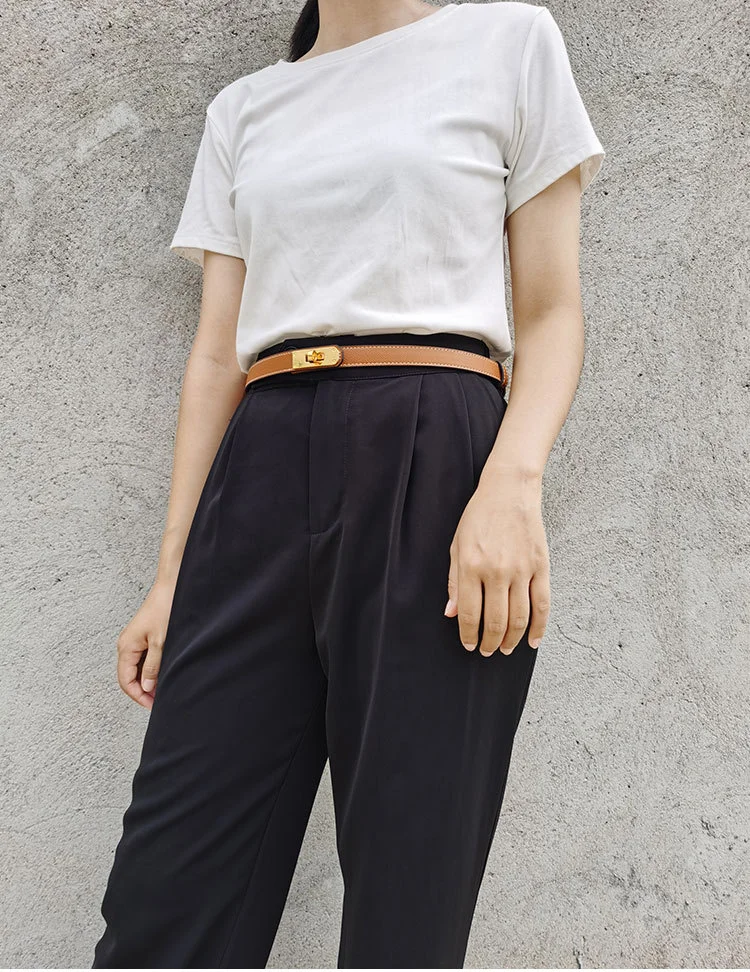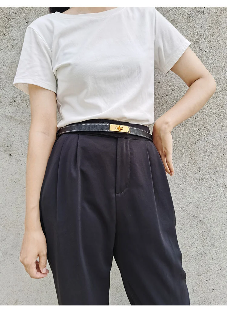 Женский модный тренд, двустороннее двухцветное изысканное платье из натуральной кожи с пряжкой и поясом, украшение из воловьей кожи