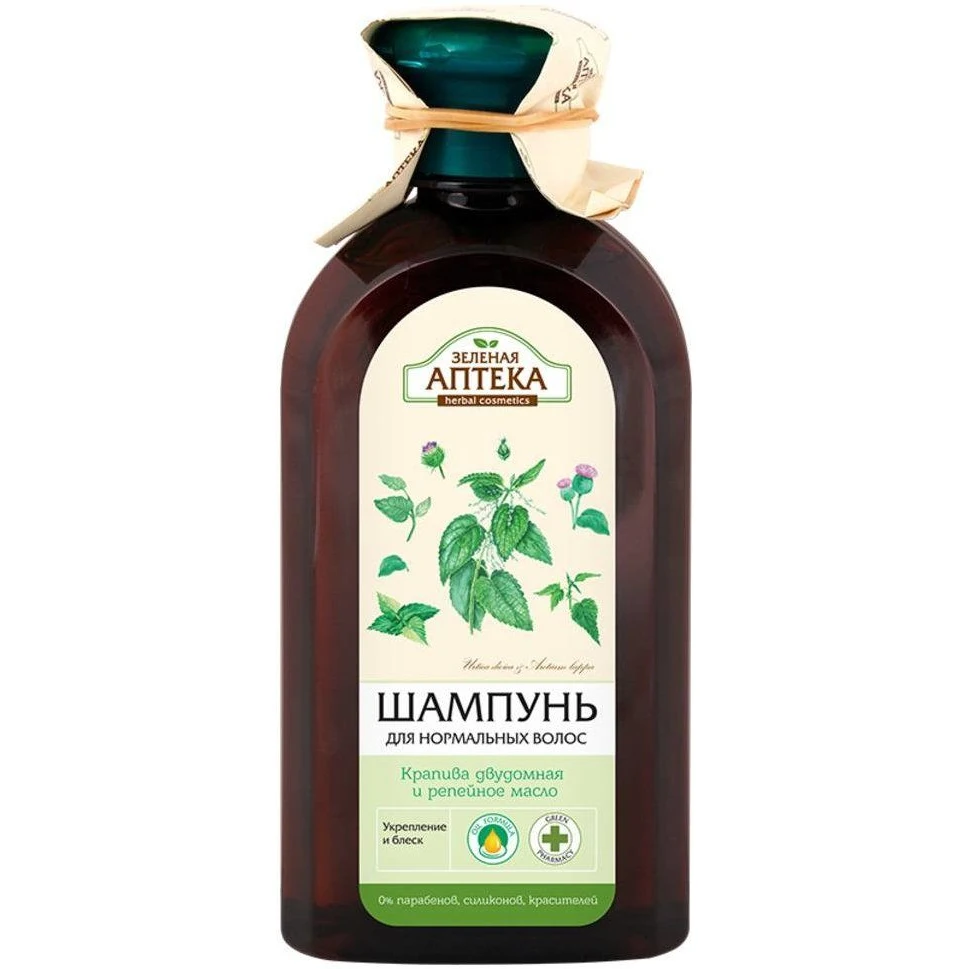 Эффективно очищает волосы и кожу головы, подходит для ухода за нормальными волосами. Экстракт крапивы способствует укреплению структуры волос, придает блеск. Репейное масло, благодаря своему уникальному составу, обеспечивает волосы необходимыми питательными веществами для их силы и блеска. Для достижения лучшего эффекта в уходе за нормальными волосами рекомендуется использовать шампунь в комплексе с бальзам-кондиционером или маской, дополняя уход настоем этой серии. Способ применения: нанести на влажные волосы, вспенить, смыть водой. Меры предосторожности: при попадании в глаза промыть водой. Возможна повышенная индивидуальная чувствительность к отдельным компонентам. 0% парабенов, силиконов, красителей. Объем: 350 мл.