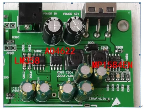 Три чипа слева направо LM358 AO4622 MP1584EN