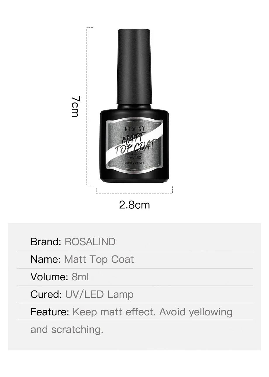 ROSALIND маникюрный праймер основа и верхнее покрытие Набор Матовый верхний гель 8 мл яркий матовый для дизайна ногтей светодиодный/УФ-лампа