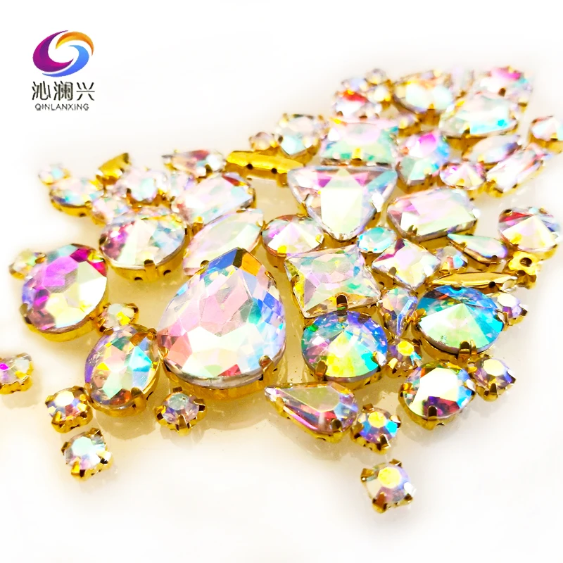 Материал: стекло,Золотой МеталлСпинка с отверстиями. Используется для одежды, ткани, обуви, крышки и в любом месте, где вы можете подумать.