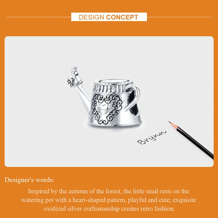 ❤【Description】Inspired к осени леса маленькая улитка упирается в горшок с узором в форме сердца, игривый и милый; Изысканное окисленное серебряное мастерство создает ретро-моду.