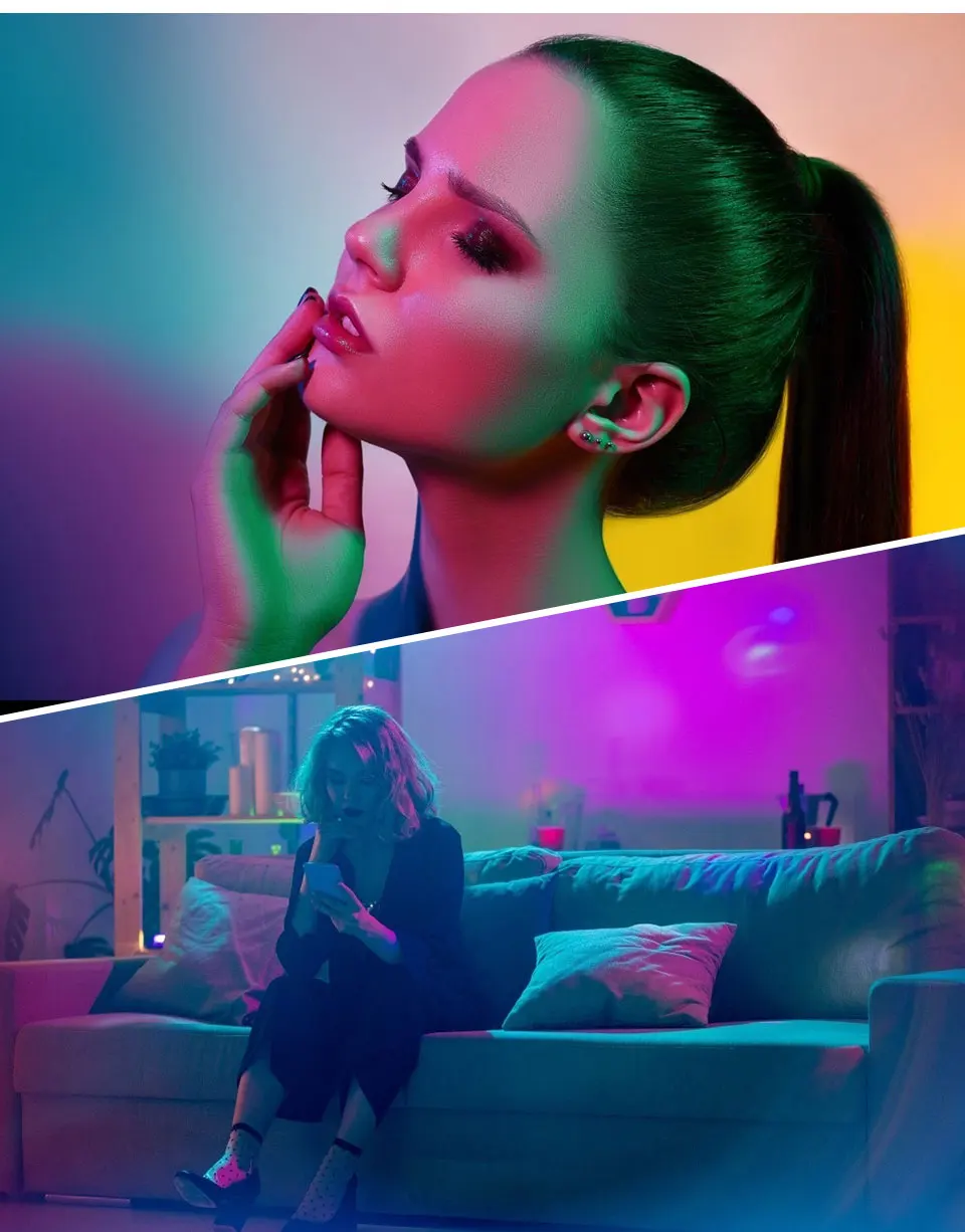 5. Living a Colorful Life --- Designed with over 16 million colors to choose, scenes DIY, schedule function and 1000lm(2700k-6500k) warm white. Just switch to your desired light mode to suit your mood and adjust the brightness to meet your needs.