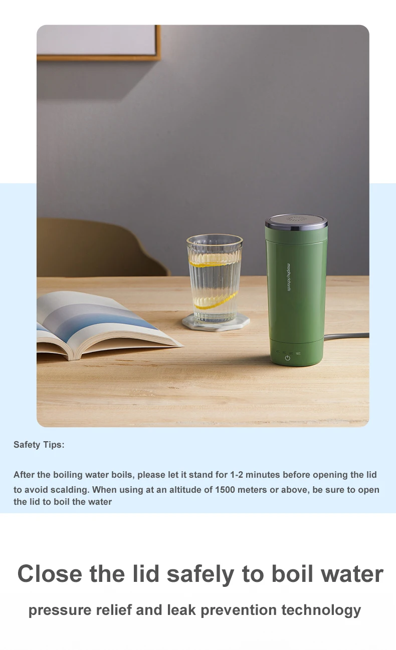После закипания кипящей воды, пожалуйста, дайте ему стоять в течение 1-2 минут, прежде чем открыть крышку, чтобы избежать ожогов. При использовании на больших высотах 1500 метров или выше, пожалуйста, не забудьте открыть крышку, чтобы вскипятить воду