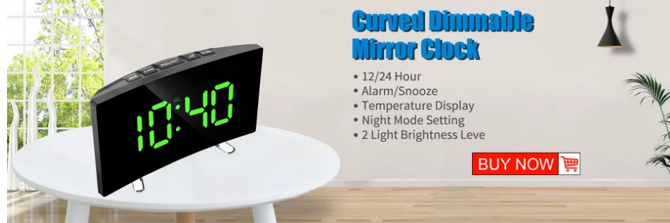 Зеленый/красный/белый светодиодный дисплей с 2 слотами: Цифровой будильник со специальным изогнутым светодиодный-экраном, вы можете четко видеть время под разными углами. Светодиодный светильник автоматически садится в ночной режим и светильник включается в течение дня.