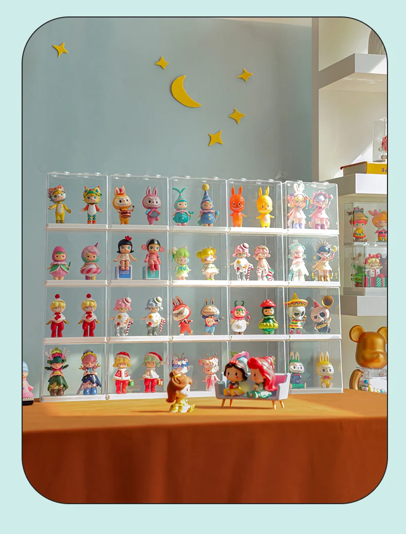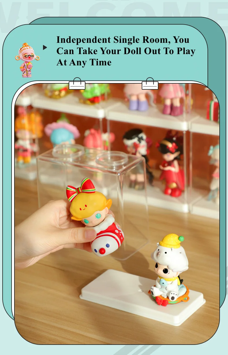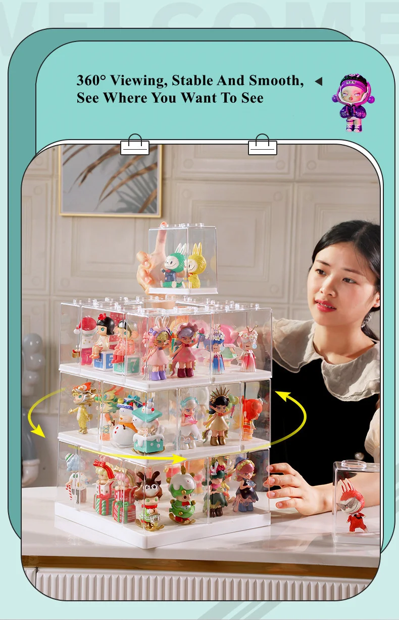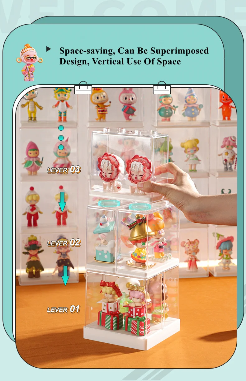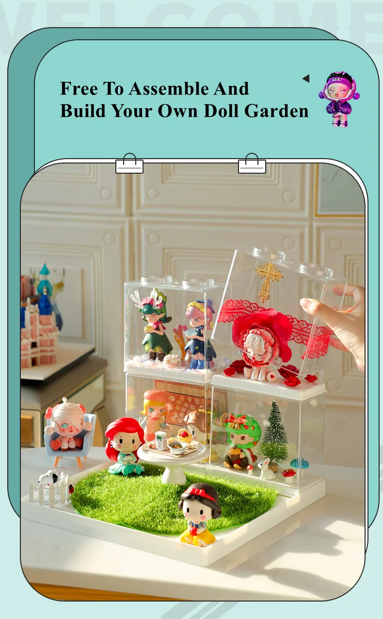 Эта креативная форма строительного блока может быть свободно наложена и собрана, каждый стиль имеет вращающееся шасси внизу, которое может поворачиваться на 360 °, И прозрачный чехол высокой четкости влагостойкий и водонепроницаемый, который может быть более точным, защищает вашу куклу и отображать ее