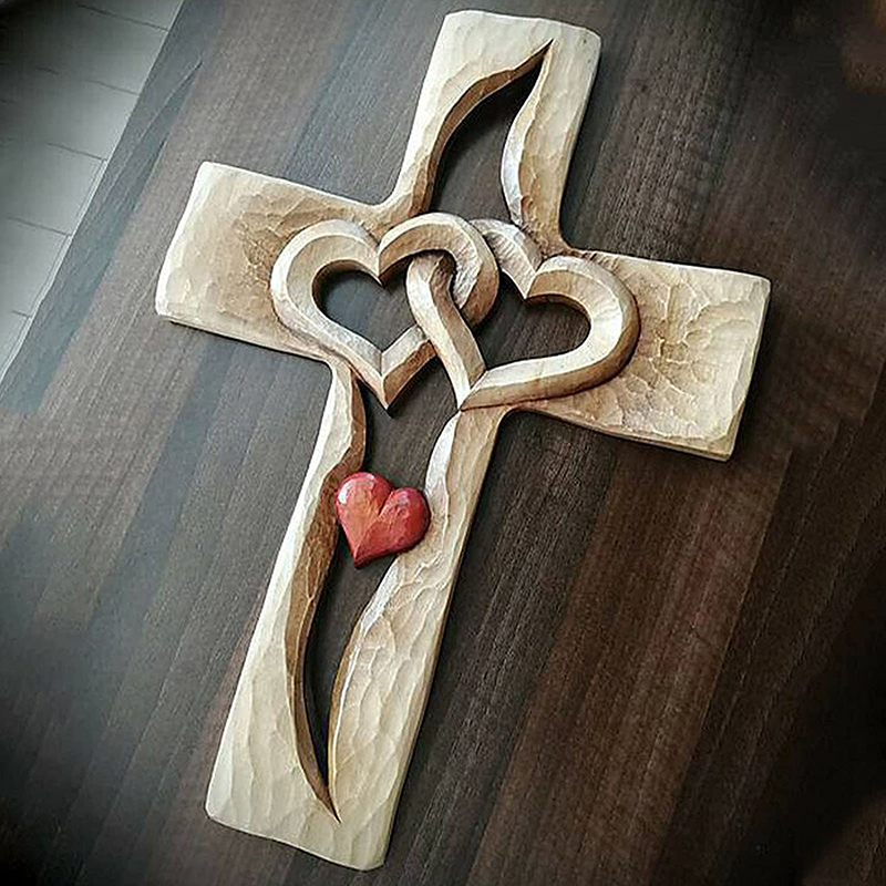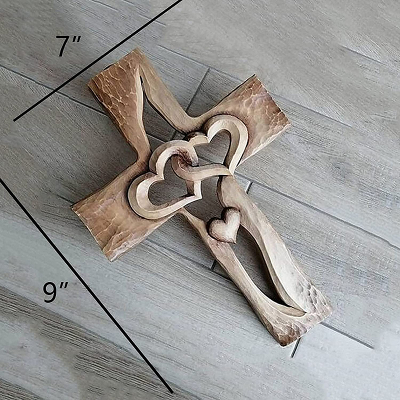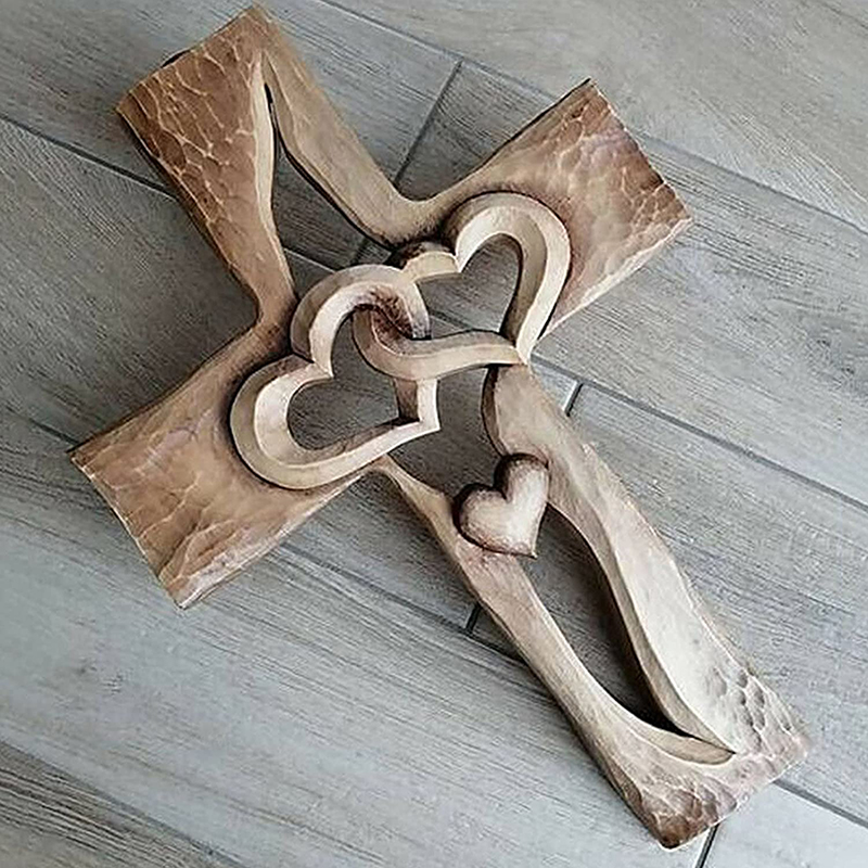 Резной деревянный крест с полыми переплетенными сердцами висящая любовь пара семейный Настенный декор распродажа