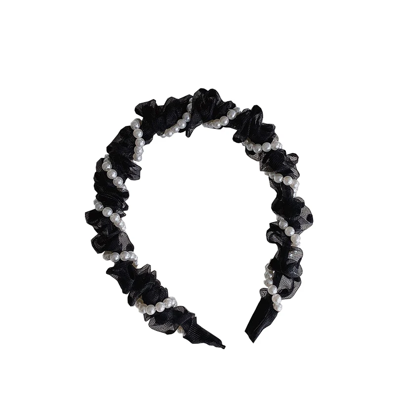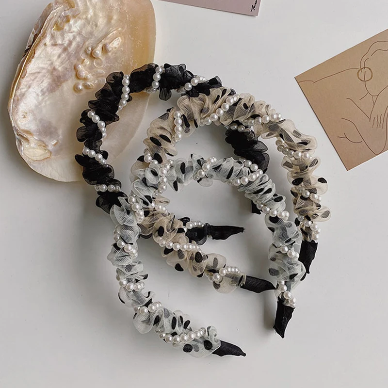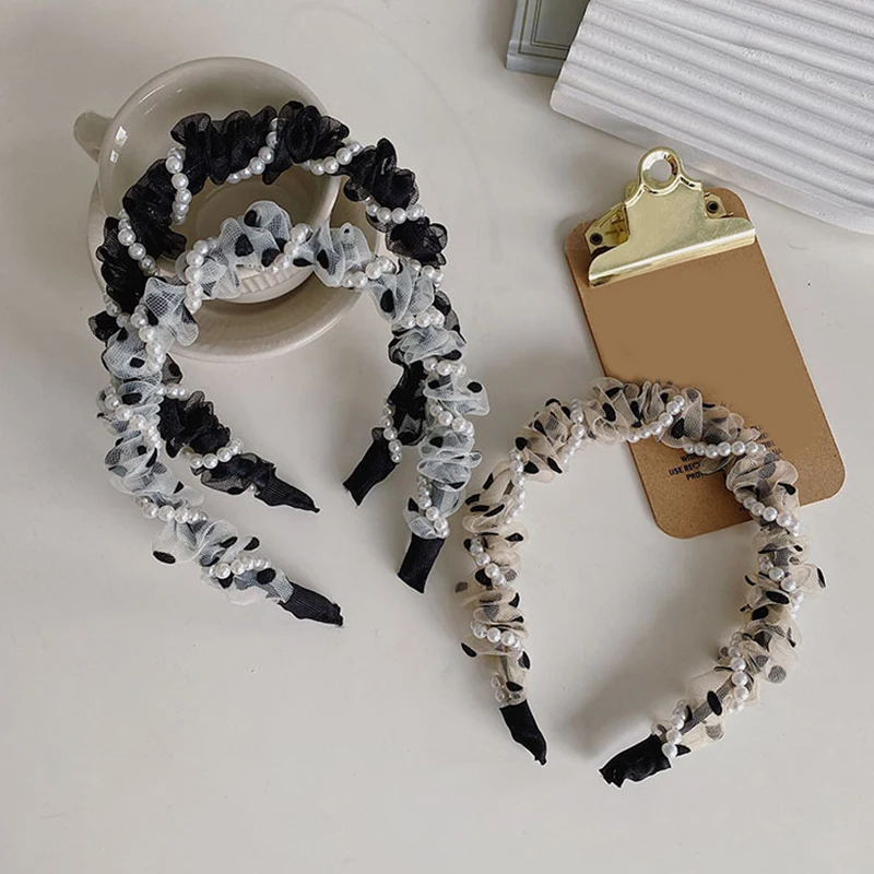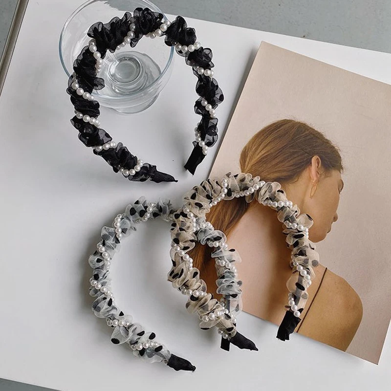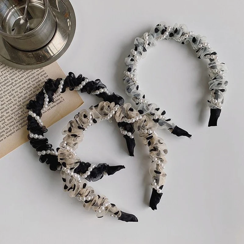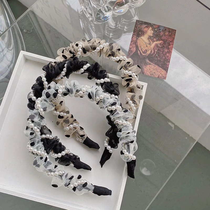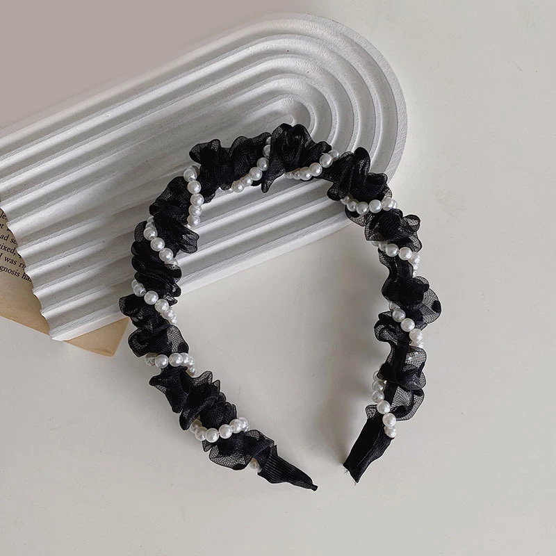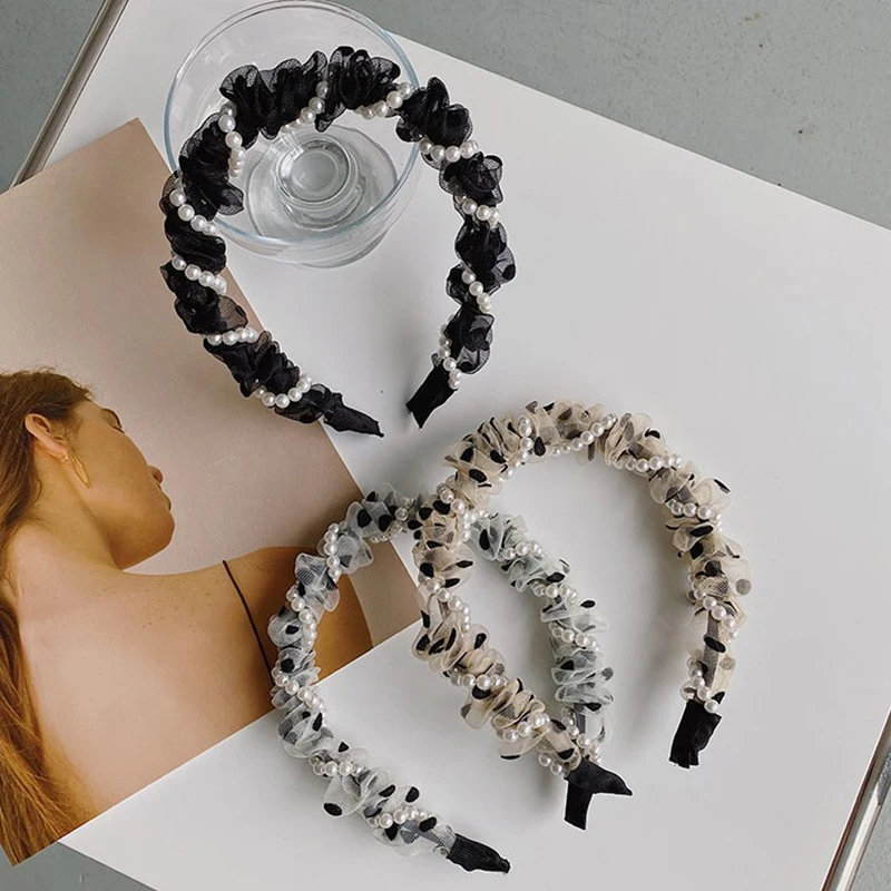 Корейский ретро элегантный головной убор мягкая нерегулярная Геометрическая тонкая цепочка головная повязка для женщин белый черный ткань Имитация Жемчуга Шпилька