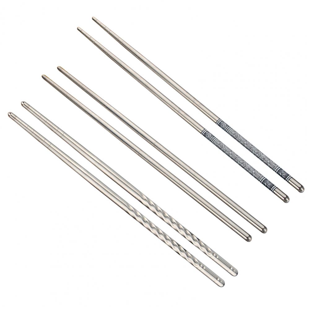 3 пары домашних антиобжигающих палочек для еды из нержавеющей стали многоразовые Нескользящие палочки для еды с резьбой
