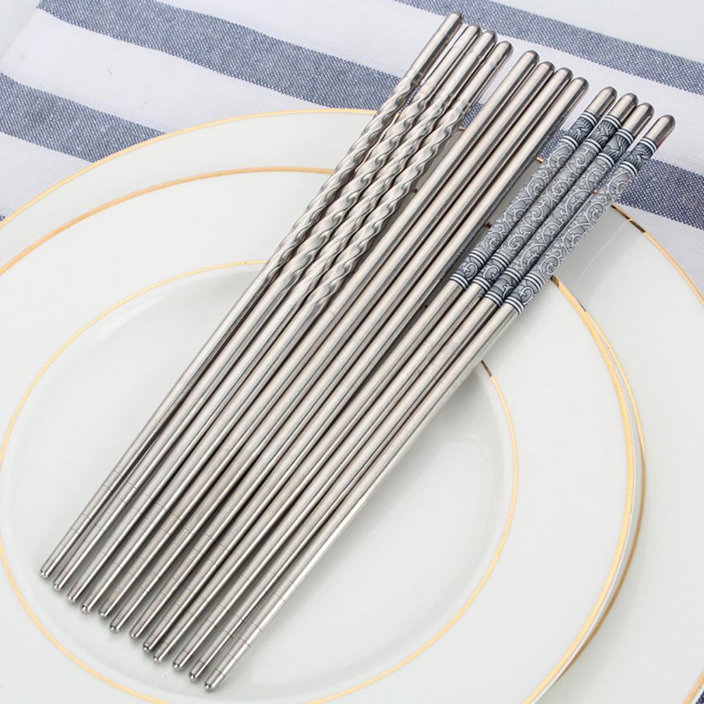 Палочки для еды изготовлены из высококачественной нержавеющей стали, Нескользящие и многоразовые.