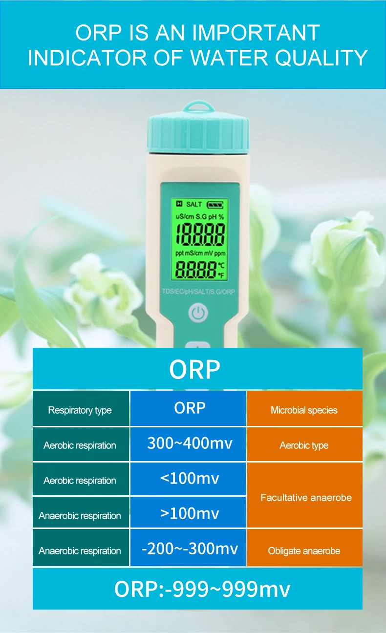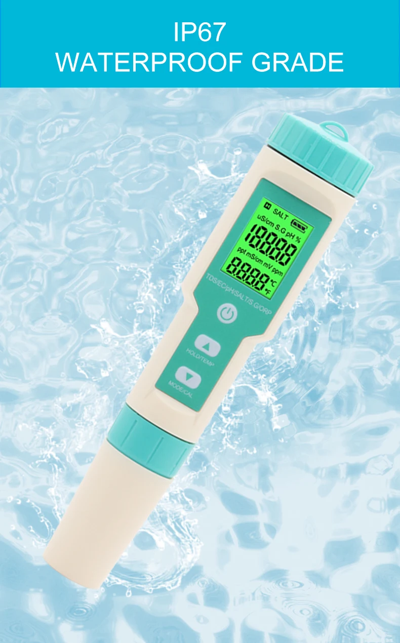 Измеряет PH,TDS,TEMP,EC,Salinity,SG,ORP.
