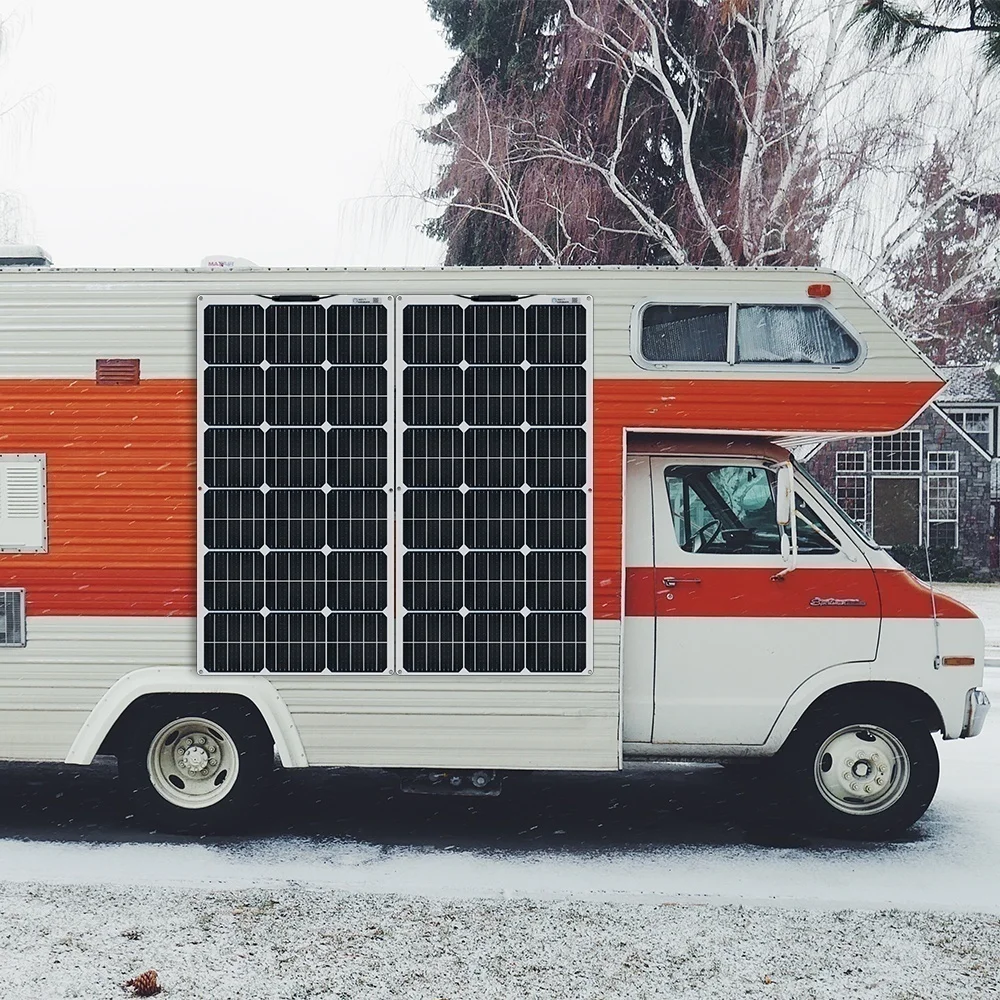 2.[Гибкость] Эта гибкая солнечная панель станет хорошим выбором для изогнутых поверхностей домов на колесах, лодок, Парусников, яхт, грузовиков, автомобилей, автобусов, кабин, кемперов, тентов, прицепов, тележка для гольфа или любая другая Неровная поверхность.