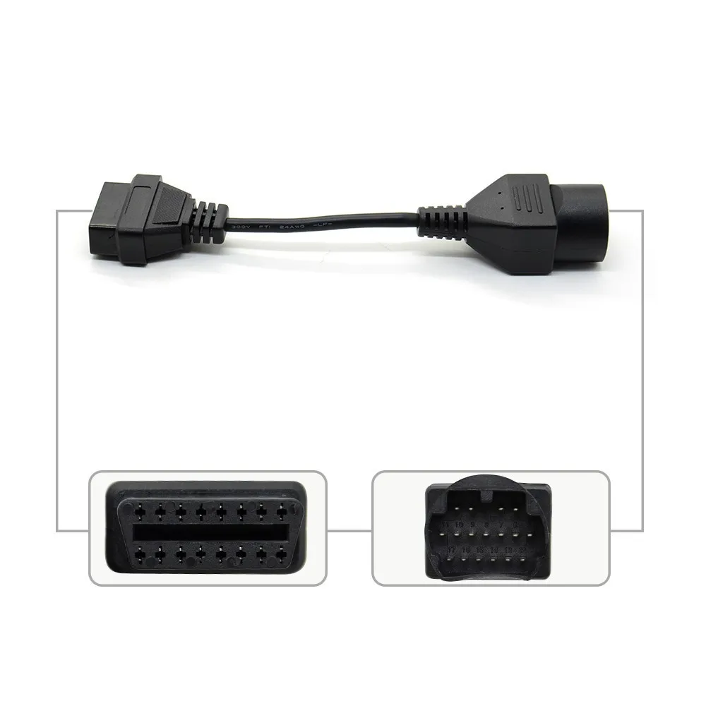 3. Работает со всеми автомобилями Mazda с диагностическим разъемом 17 pin.4. Разъем: для Mazda 17 контактный разъем и OBD2 16 контактный разъем.5. Общая длина: 21 см.6. Упаковочный лист: 1 x для Mazda 17 Pin Male для OBD2 16 Pin Female Adapter.